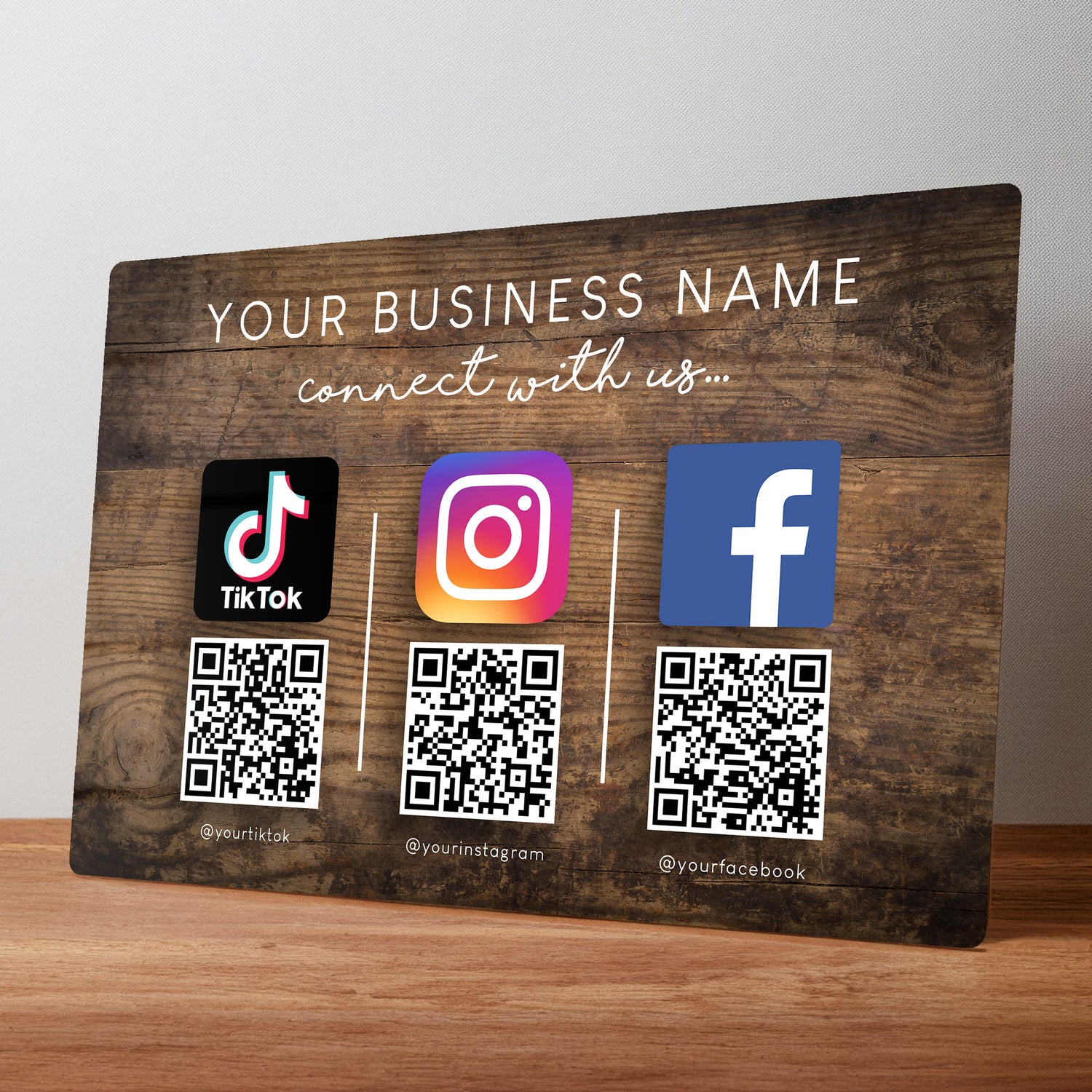 Business Social Media Metal Sign with QR Code for Shop Counters, Wall Mounting and Fairs