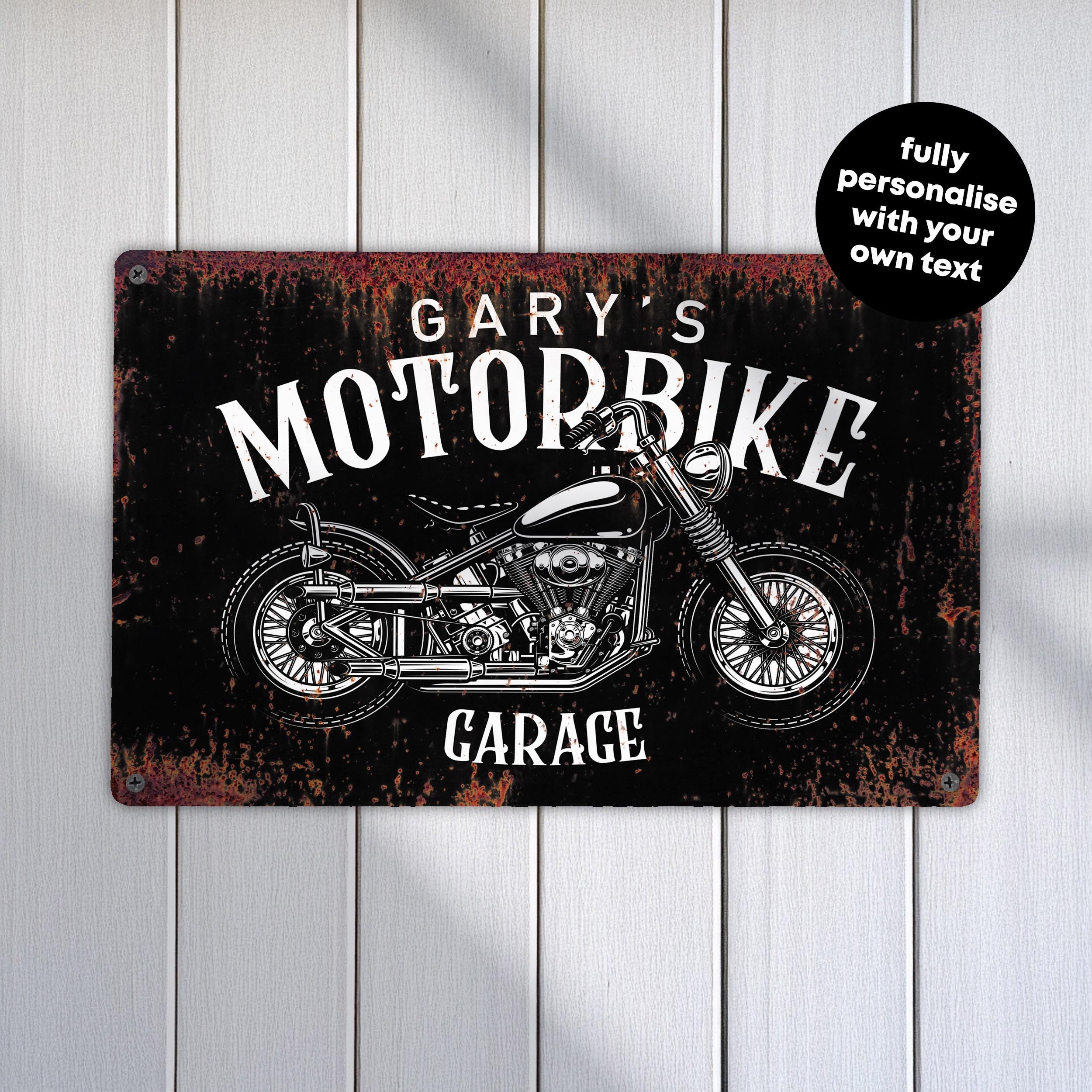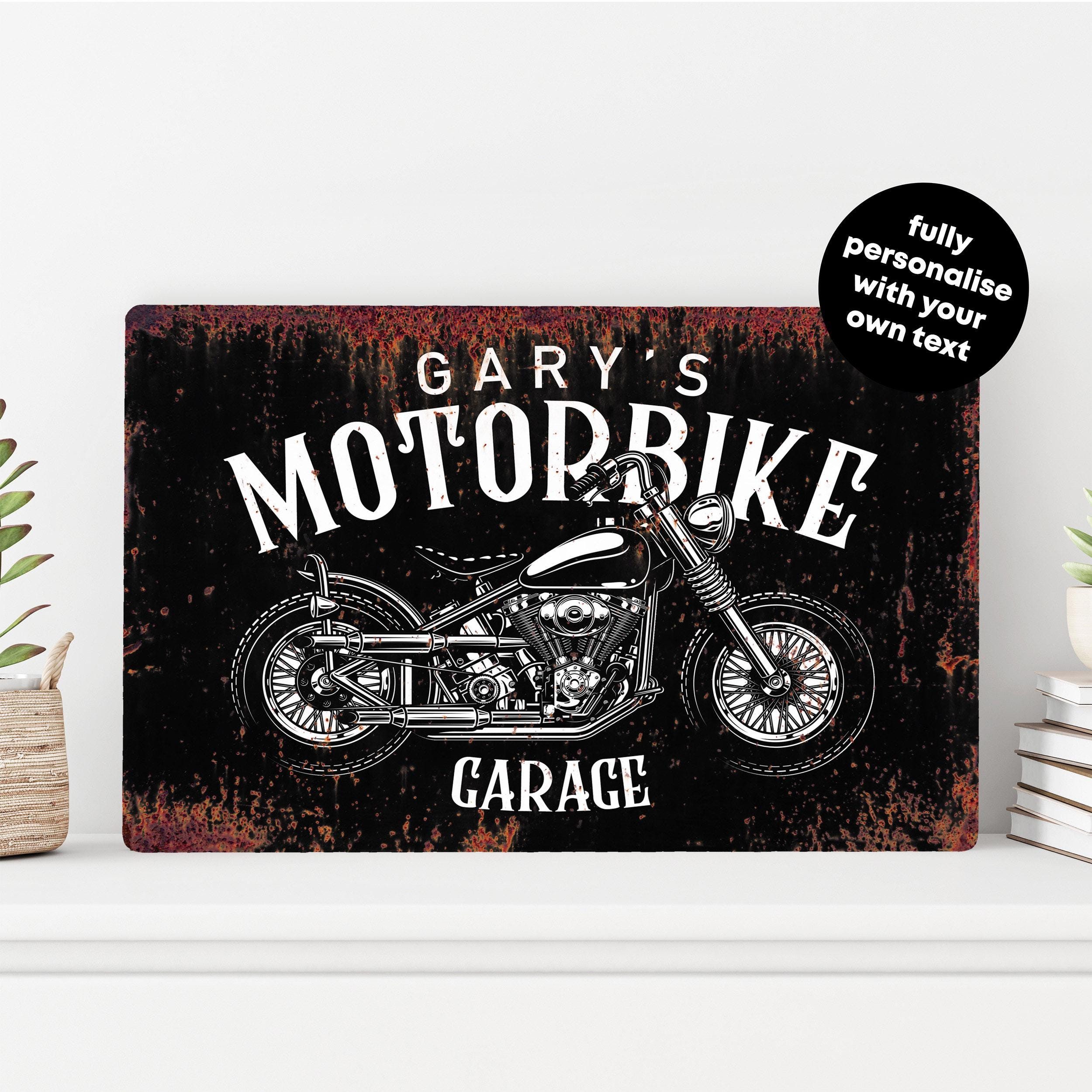 This Personalised Motorbike Sign brings vintage biker vibes to your garage, shed, or workshop. With a rustic retro design and custom printed text, it's a brilliant gift idea for any motorcycle fan, perfect for mancaves, home garages, or rider-themed spaces.