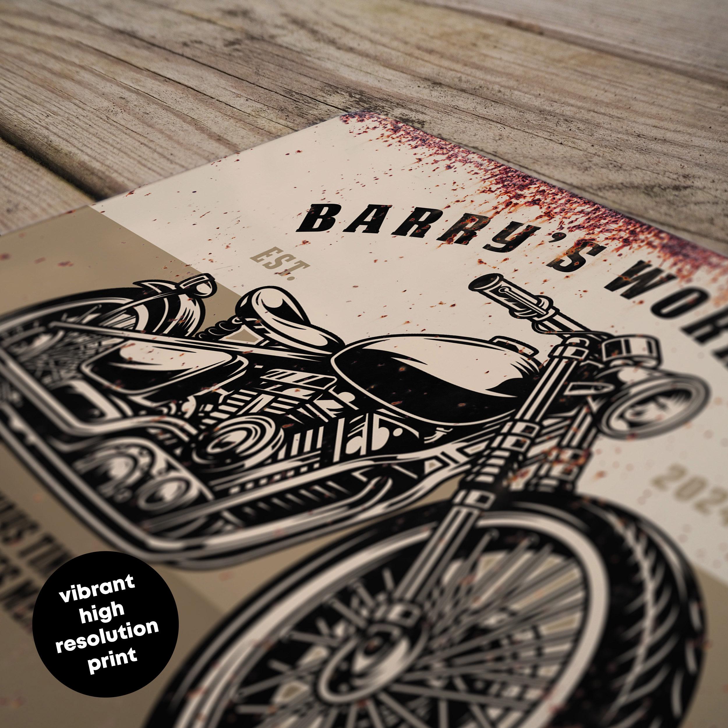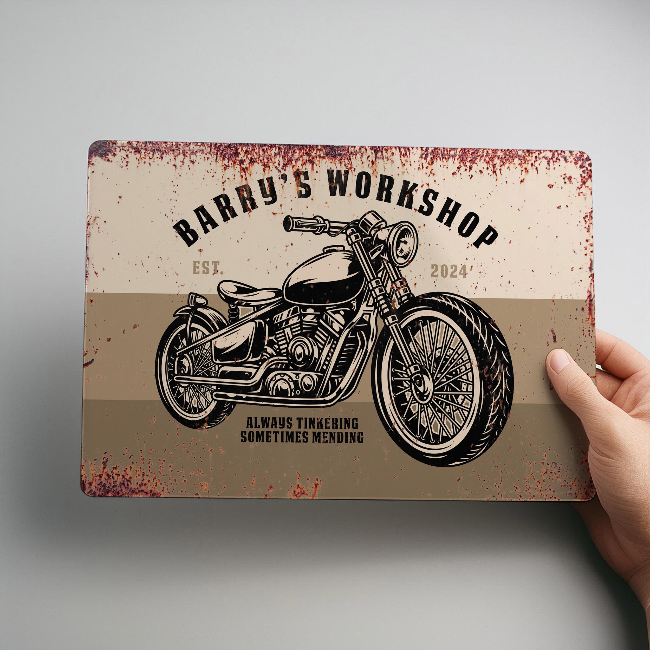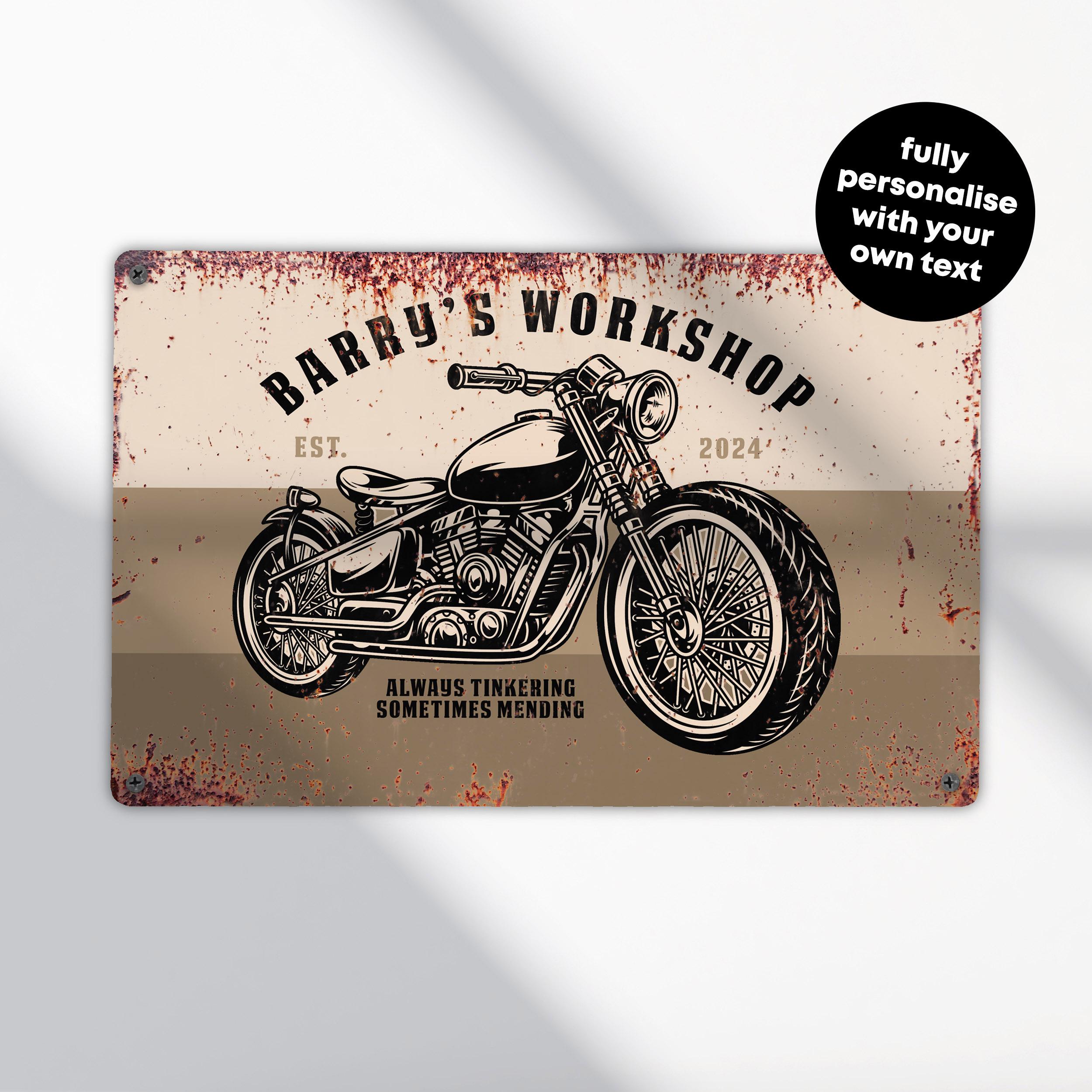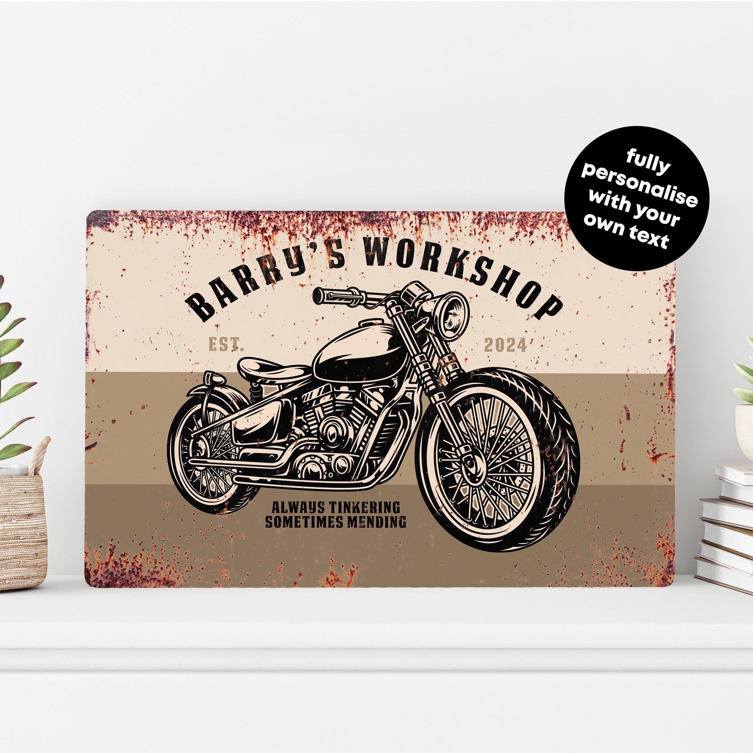 Custom Classic Motorcycle Sign Old School Garage Decor Personalised Workshop Plaque