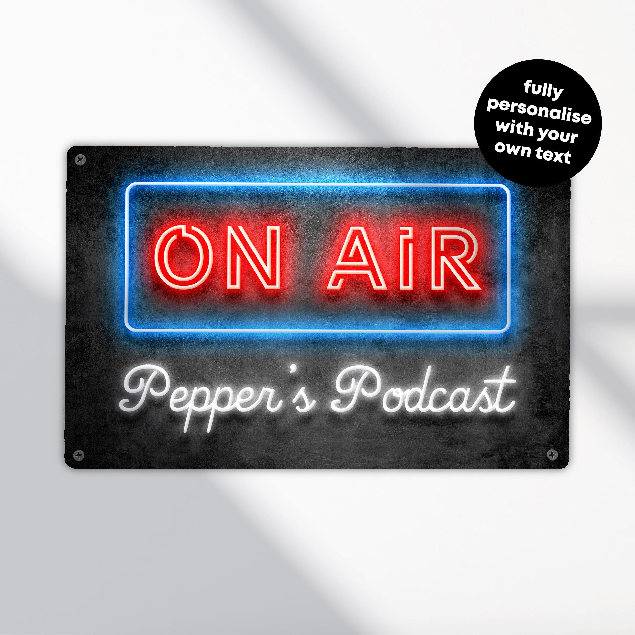Add vibrant style to your home studio or podcasting setup with this Personalised Neon Effect Podcast Sign. This custom printed metal sign mimics neon lighting without actual illumination, making it a unique gift idea for podcasters and content creators wanting bold decor.
