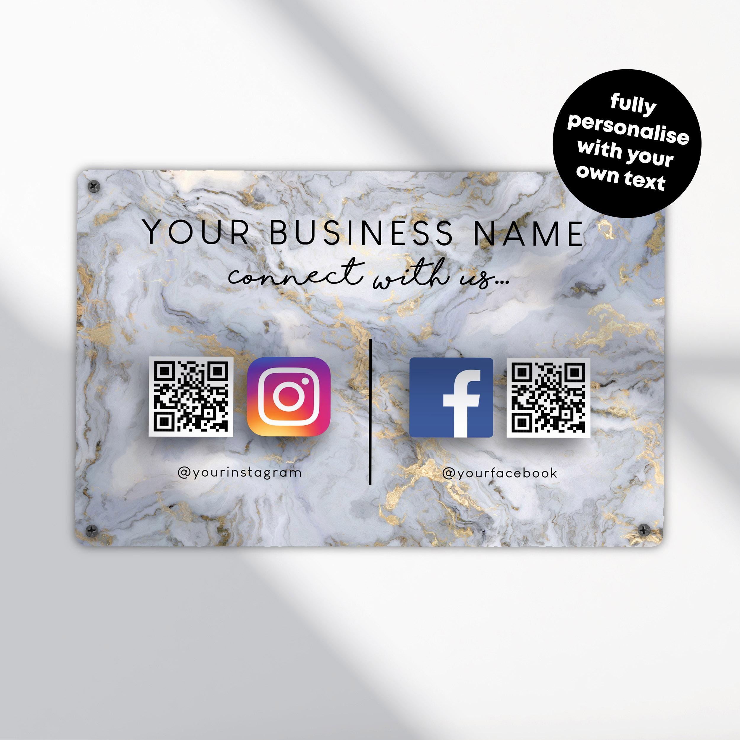 Custom QR Code Social Media Sign Personalised Business Display for Salon Shop Restaurant or Events