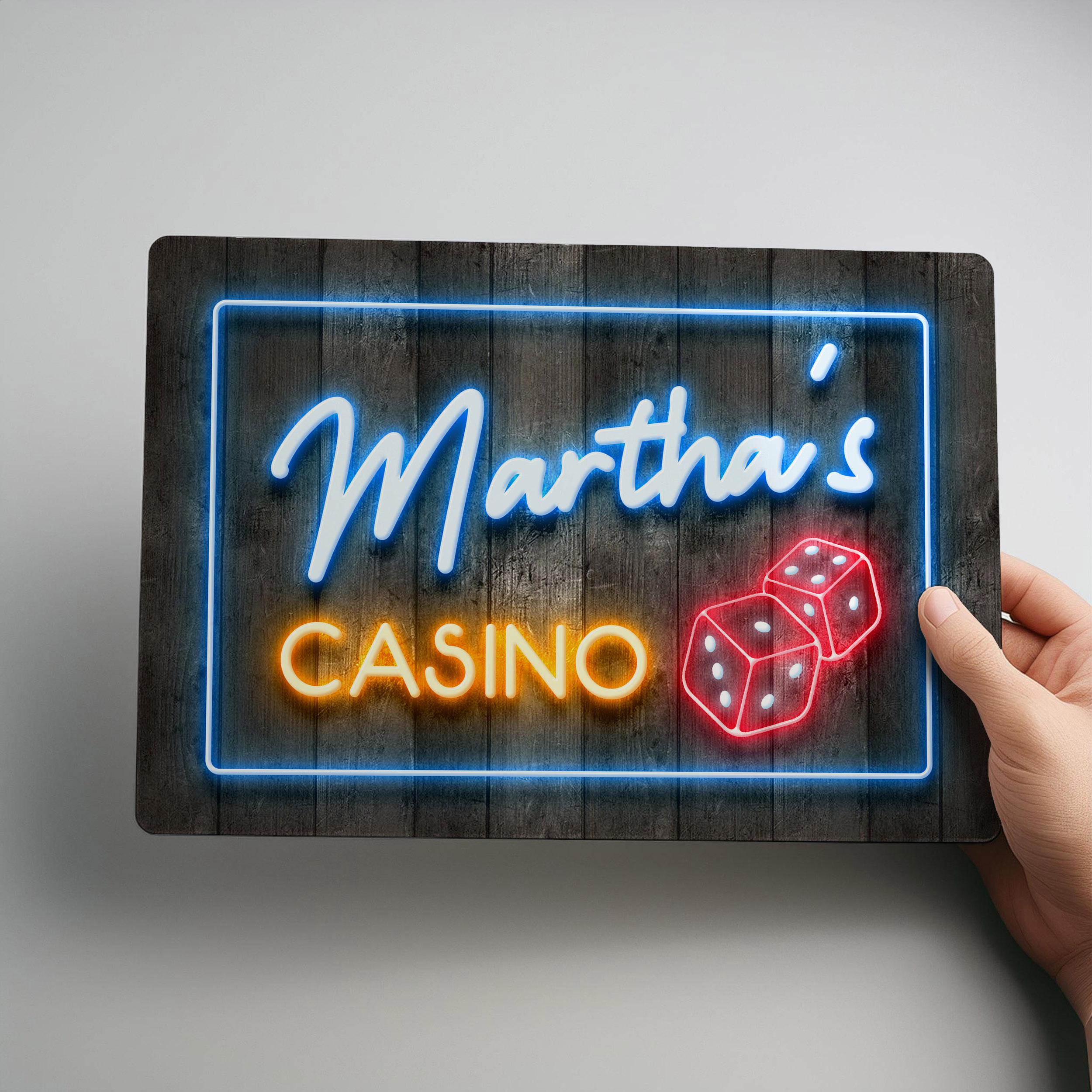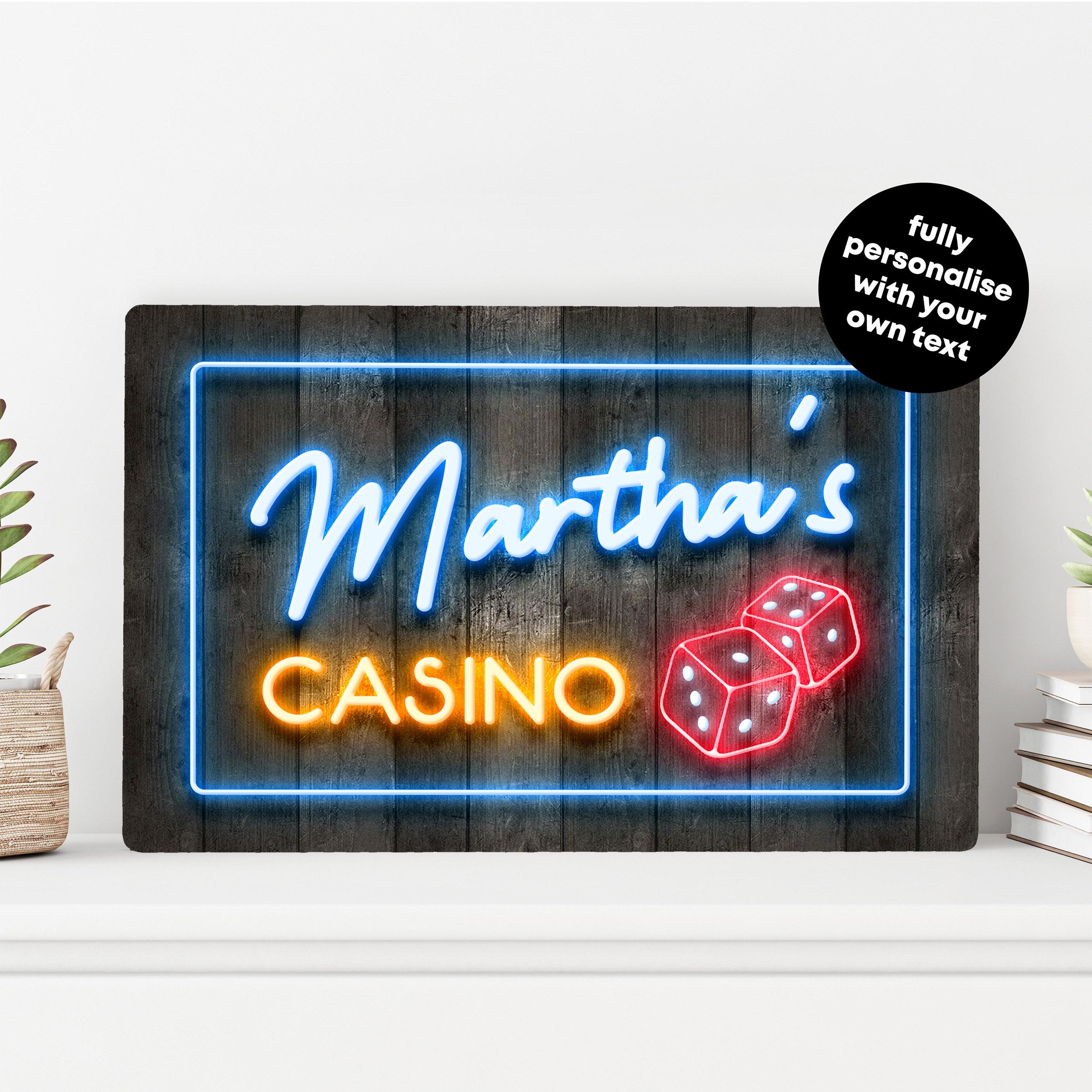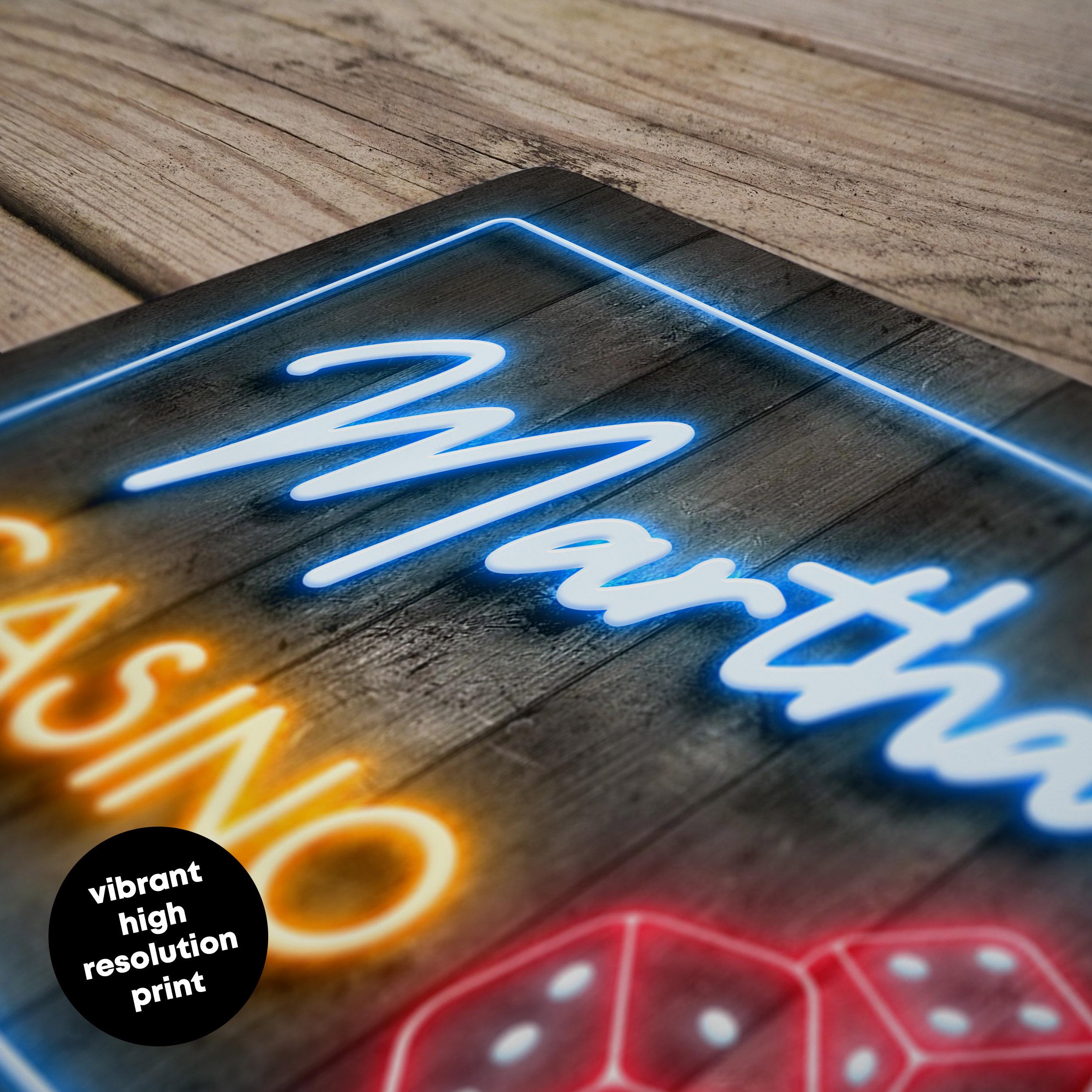 Bring Vegas vibes to your space with this Personalised Neon Style Casino Sign – the ultimate custom decor for gaming rooms, man caves, or home bars. Designed with a glowing neon effect and printed on durable metal, it’s a standout piece and a brilliant gift idea for any casino lover or poker fan.
