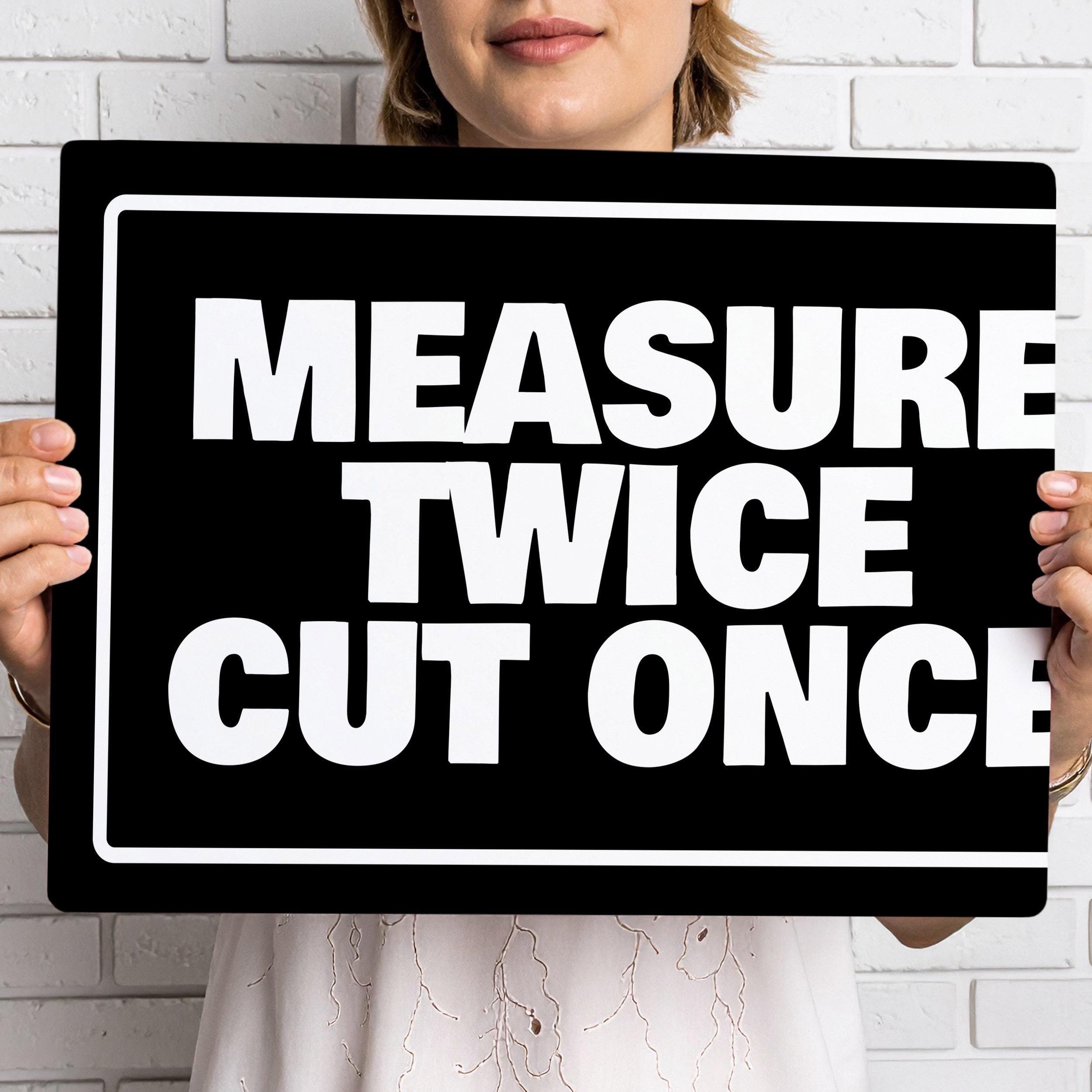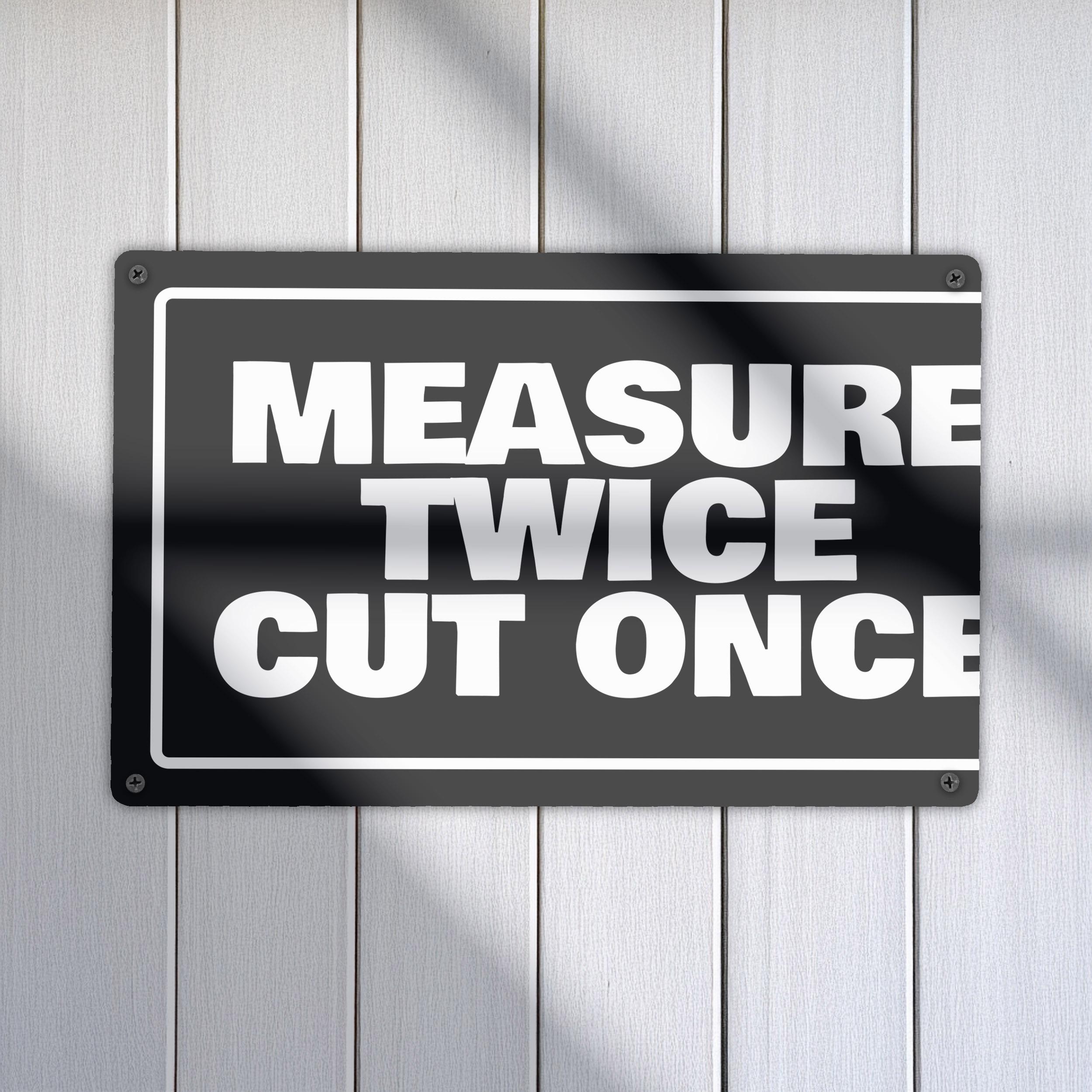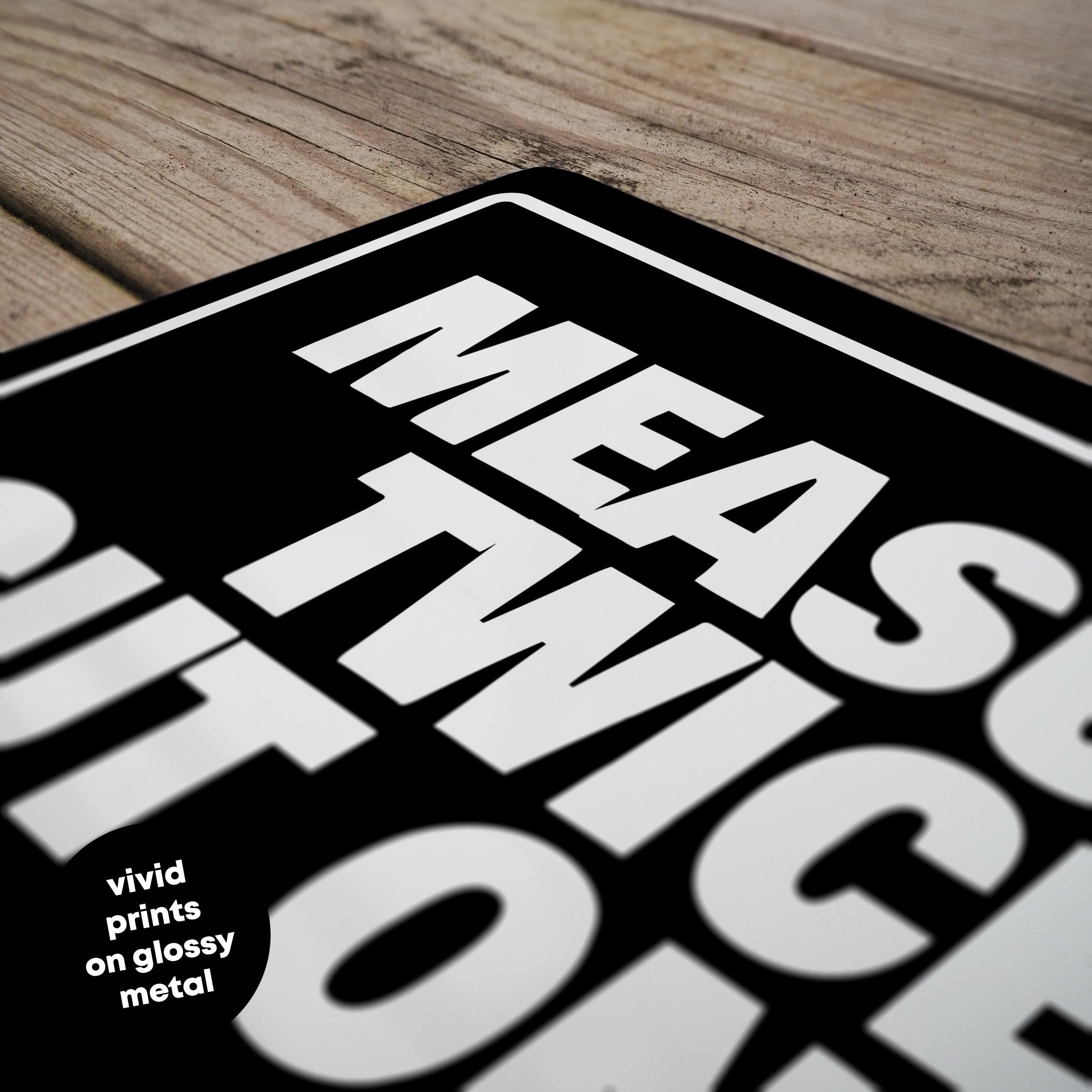 Funny Measure Twice Cut Once Metal Sign Garage Wall Art Workshop Decoration Tool Shed Humour Sign