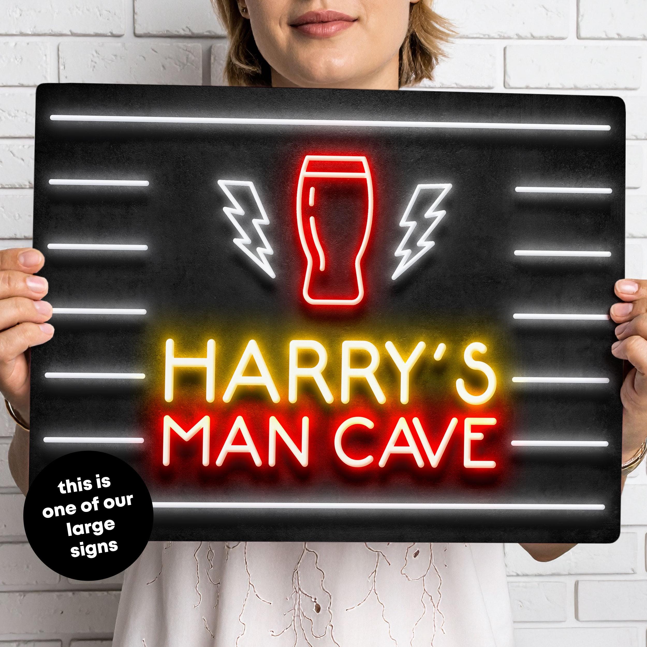 Upgrade your man cave with this Personalised Man Cave Sign featuring a vibrant neon style design. Perfect for games rooms, home bars, or mancaves, this custom printed sign adds a unique and personalised touch. A brilliant gift idea for birthdays, housewarmings, or any man cave enthusiast.