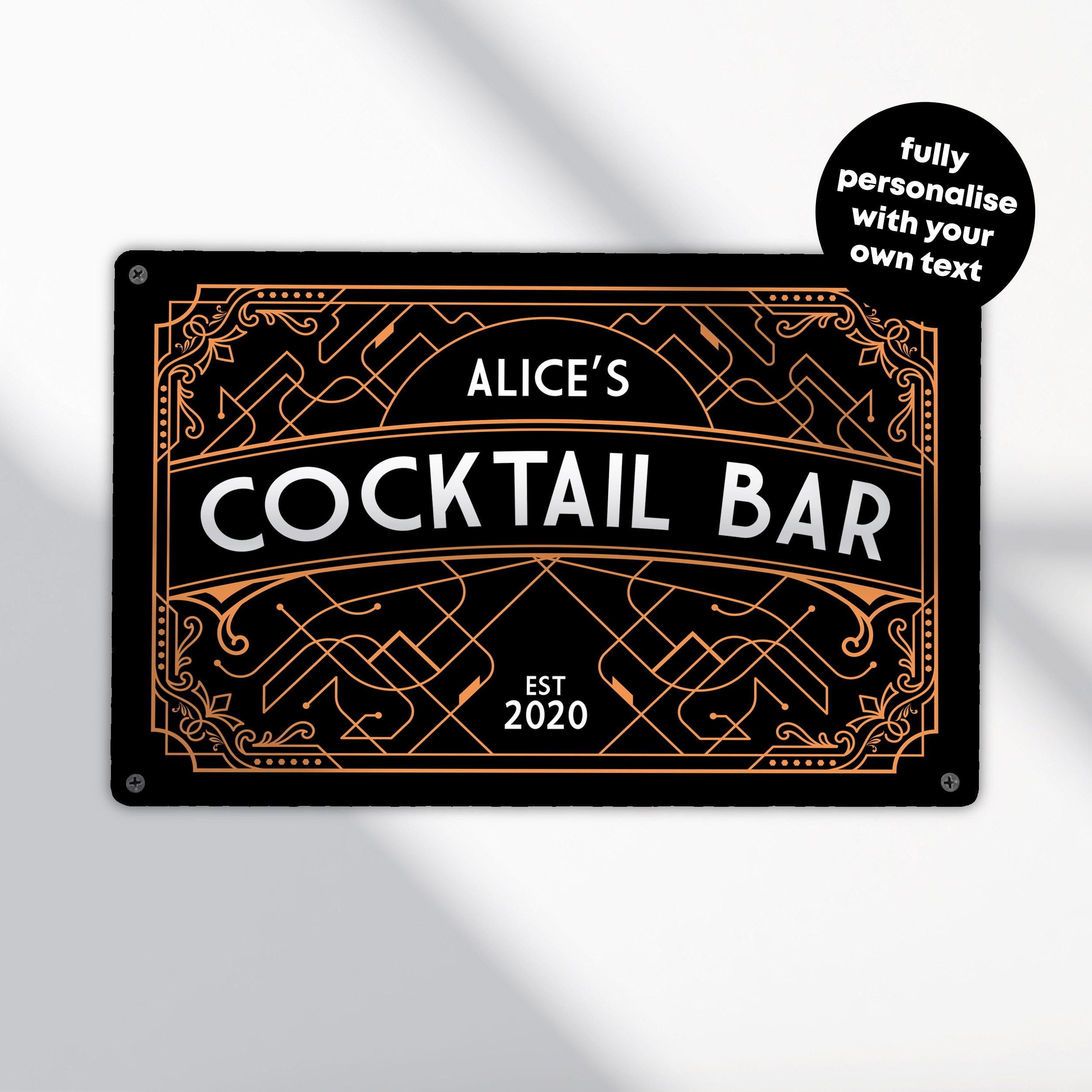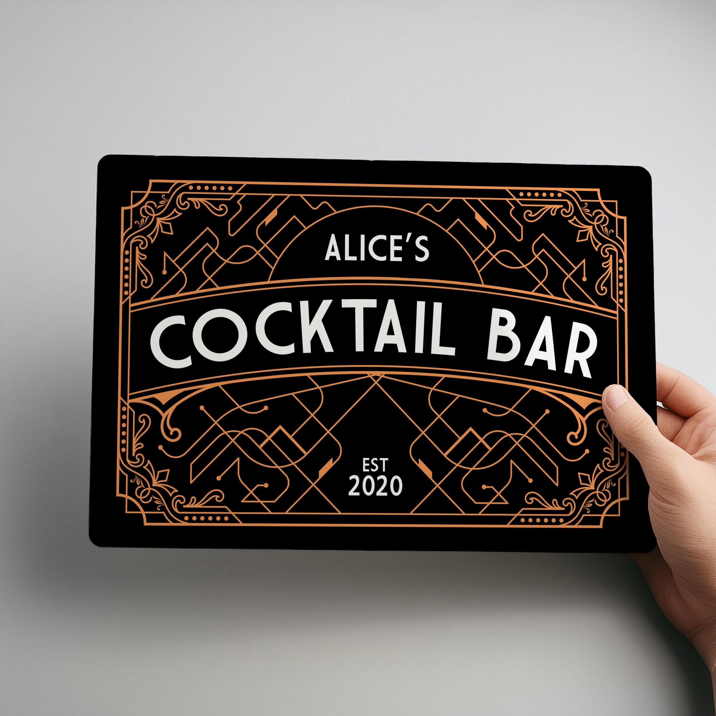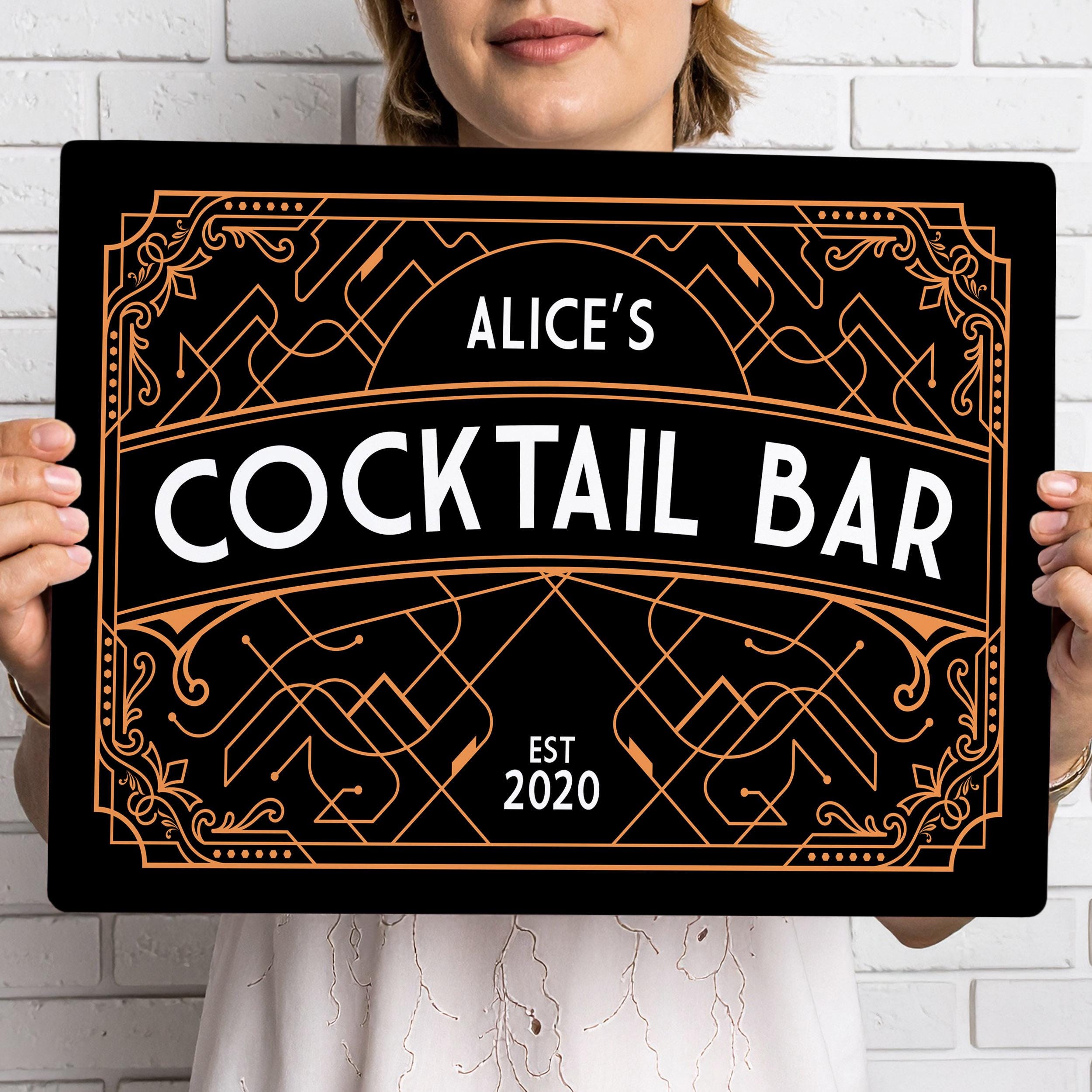 Personalised Art Deco Cocktail Bar Sign Custom Home Bar Wall Art Retro Drinks Lounge Decoration