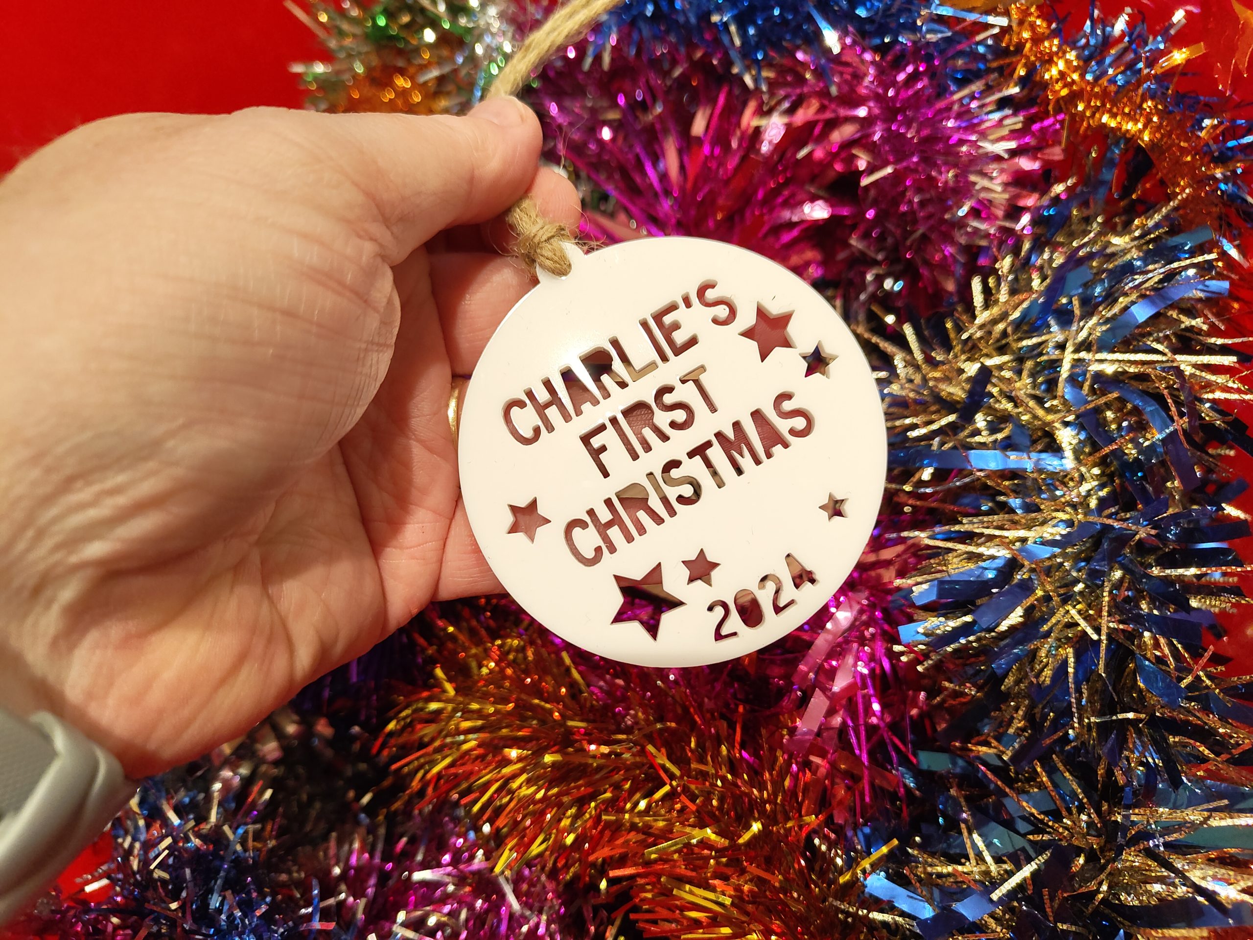 Personalised Baby’s First Christmas Bauble Custom Keepsake in Wood or Acrylic