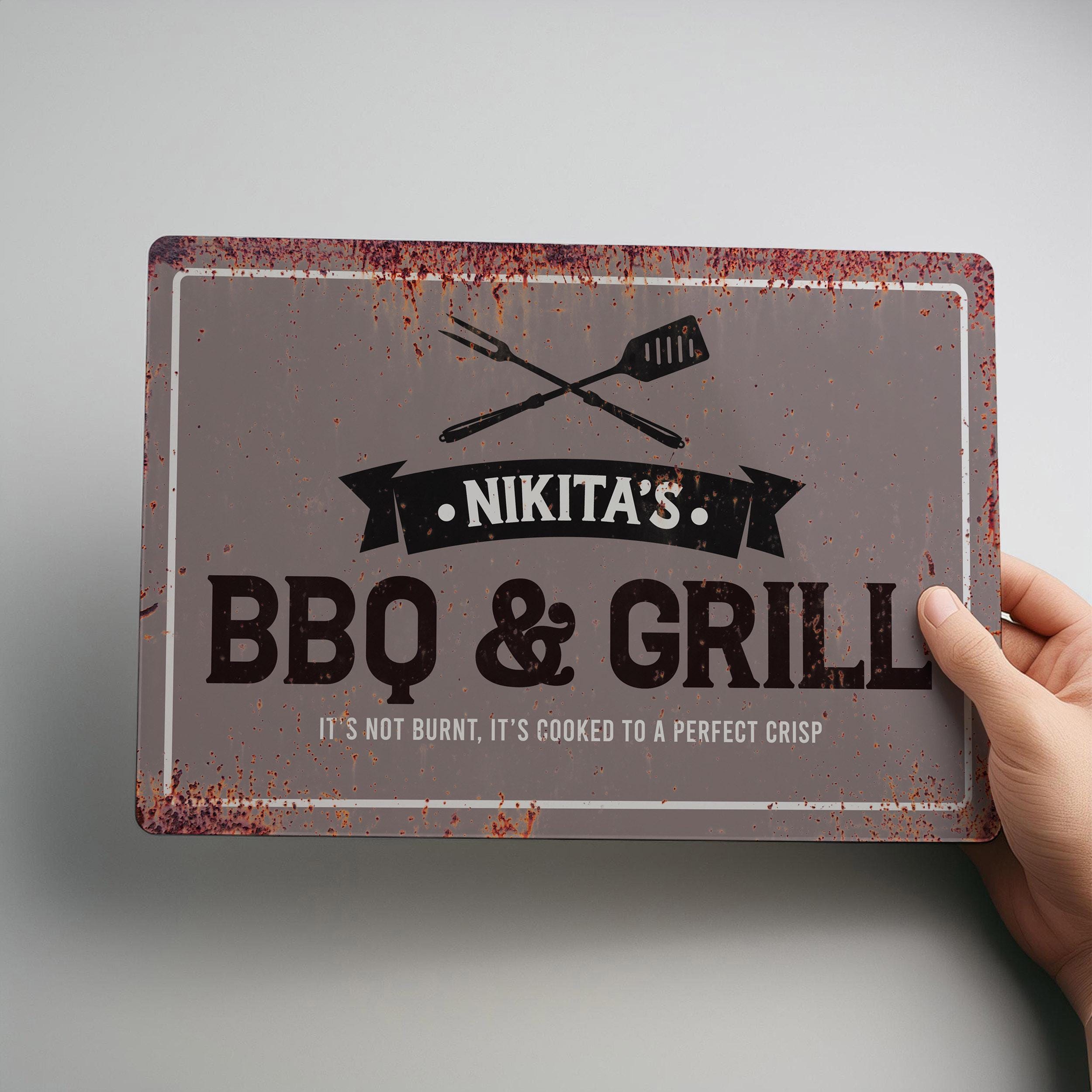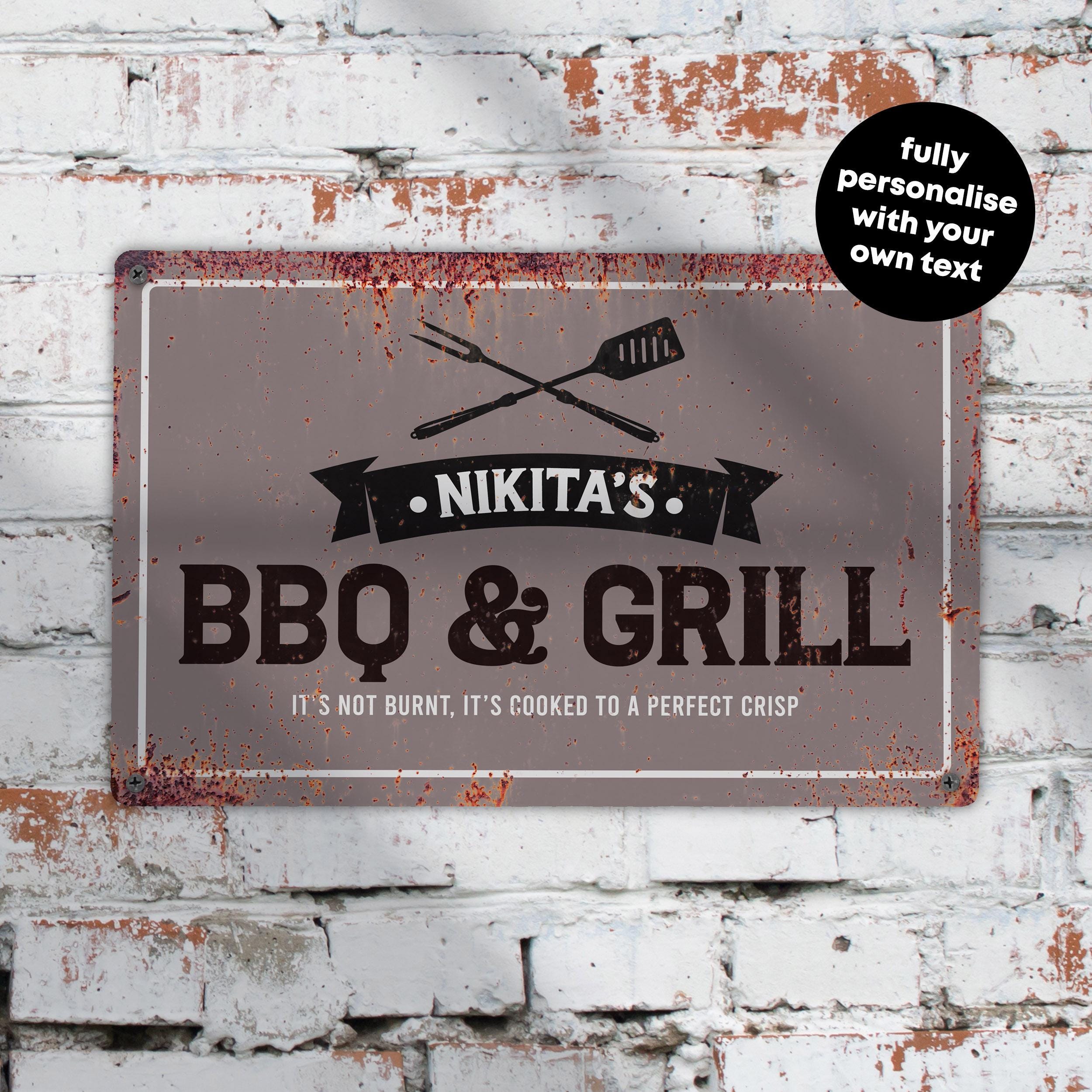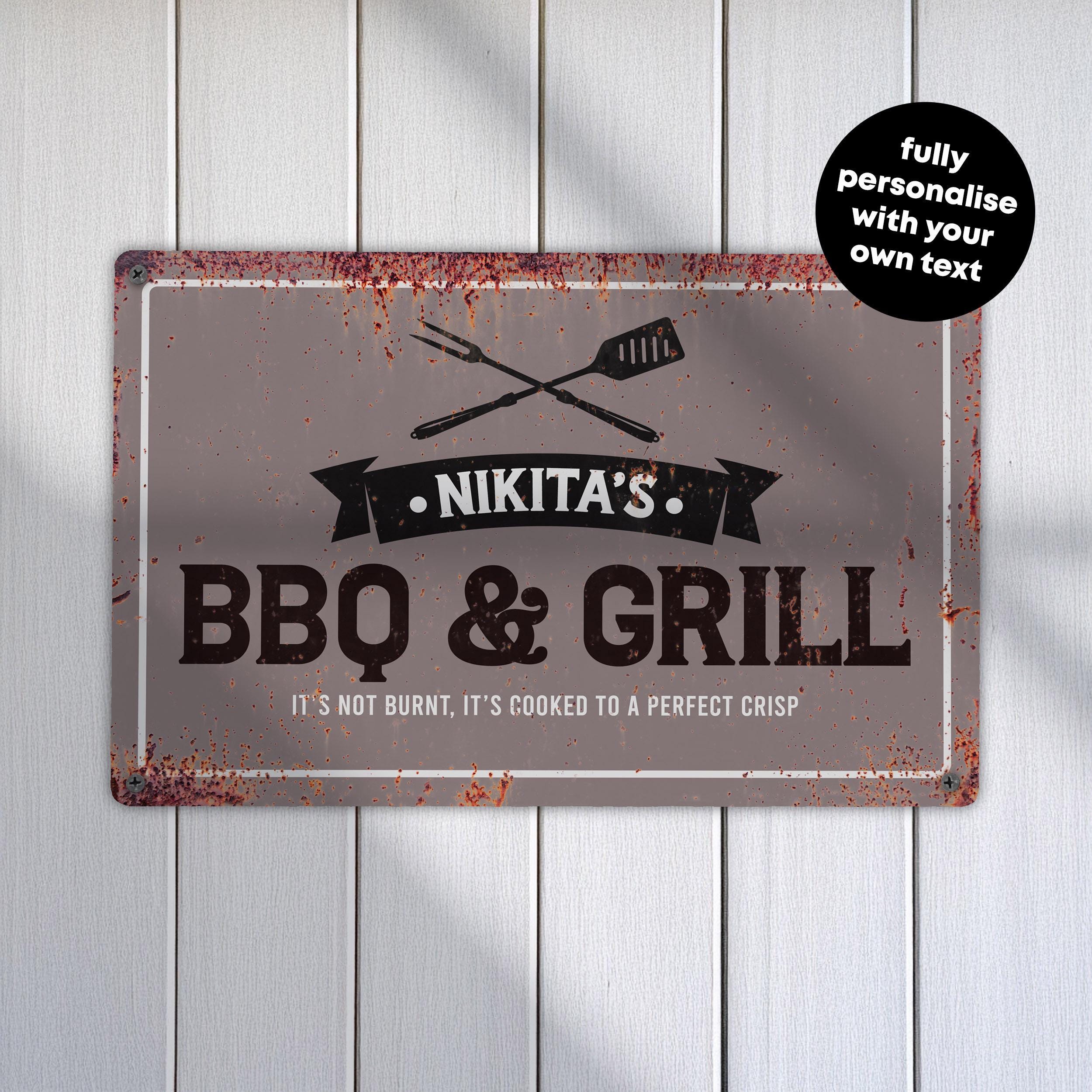 Personalised BBQ Metal Sign Custom Grill Wall Art Outdoor Cooking Decoration Rustic Garden Sign