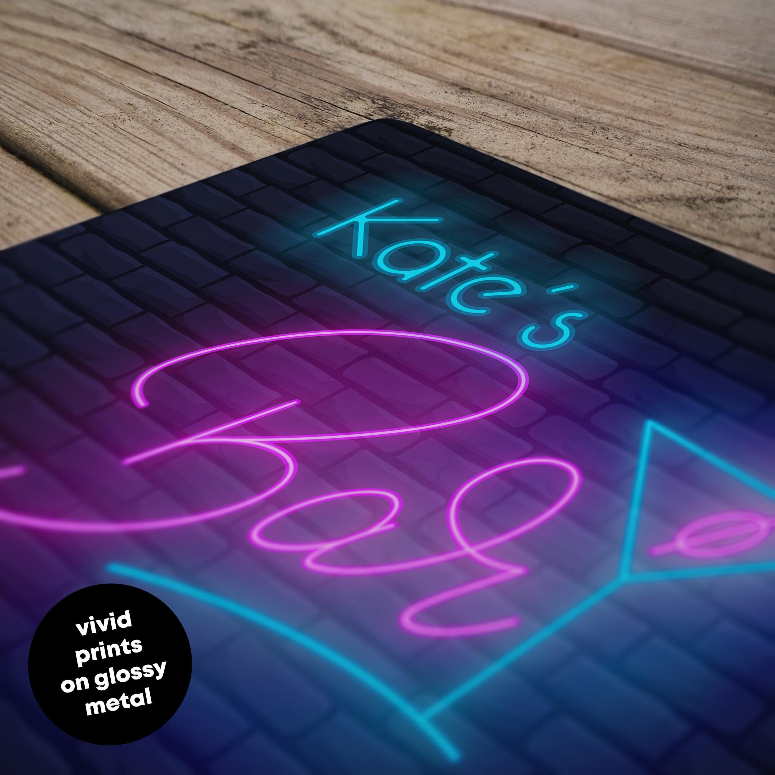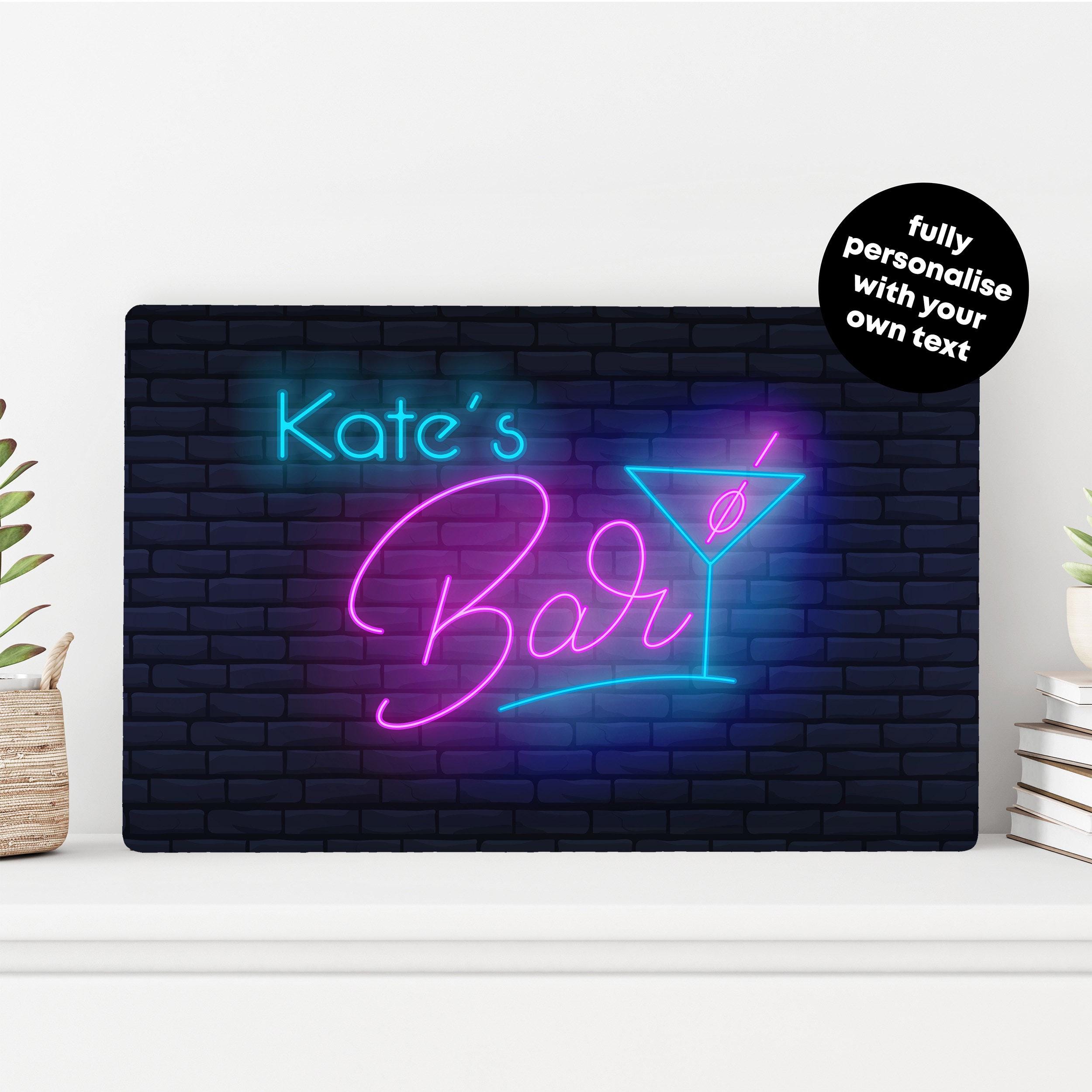Add a pop of personality to your bar setup with this Personalised Neon Style Bar Sign. Printed on durable metal with a bold neon look, it’s perfect for garden bars, gin corners, or home pubs. A unique gift idea for gin and tonic lovers and bar enthusiasts alike.