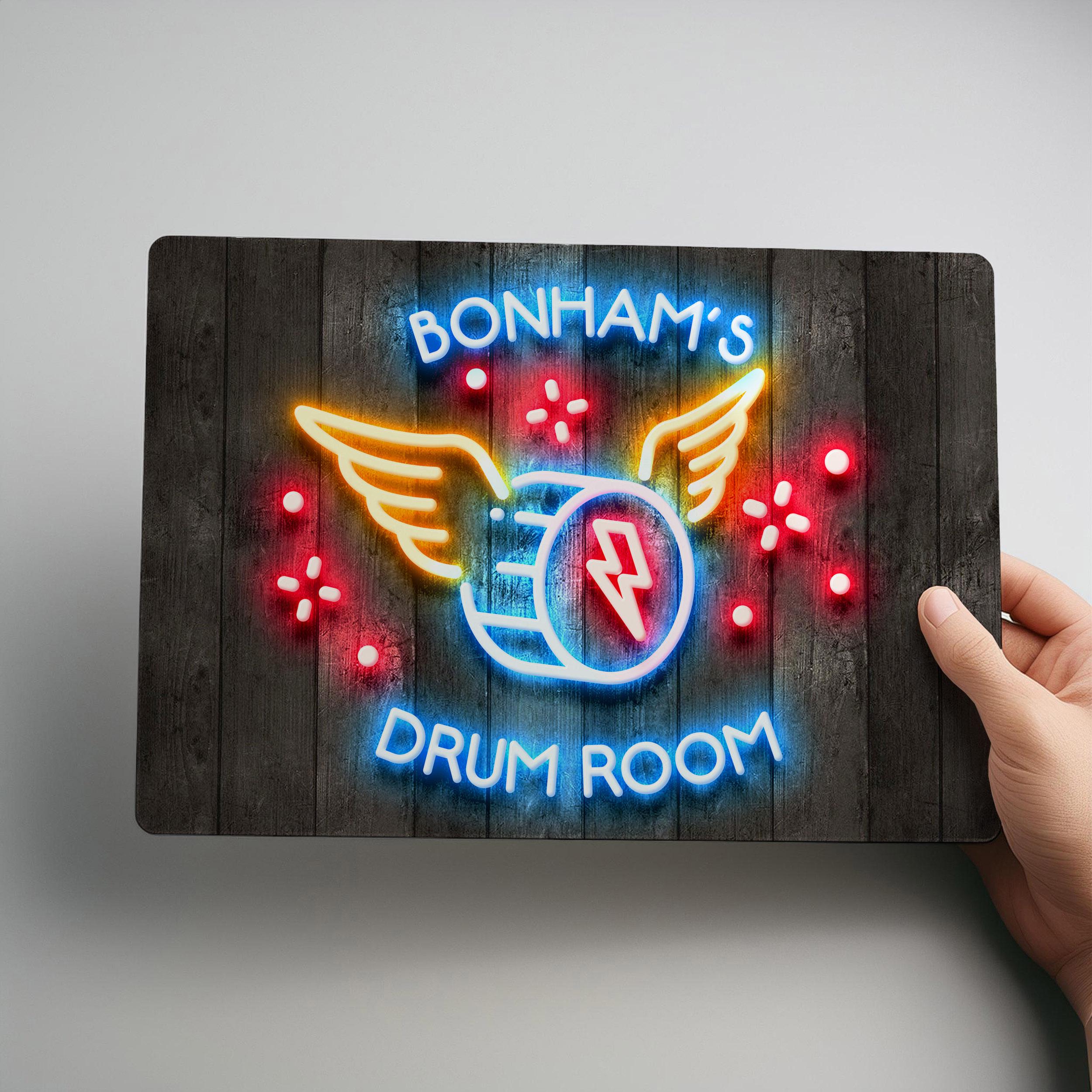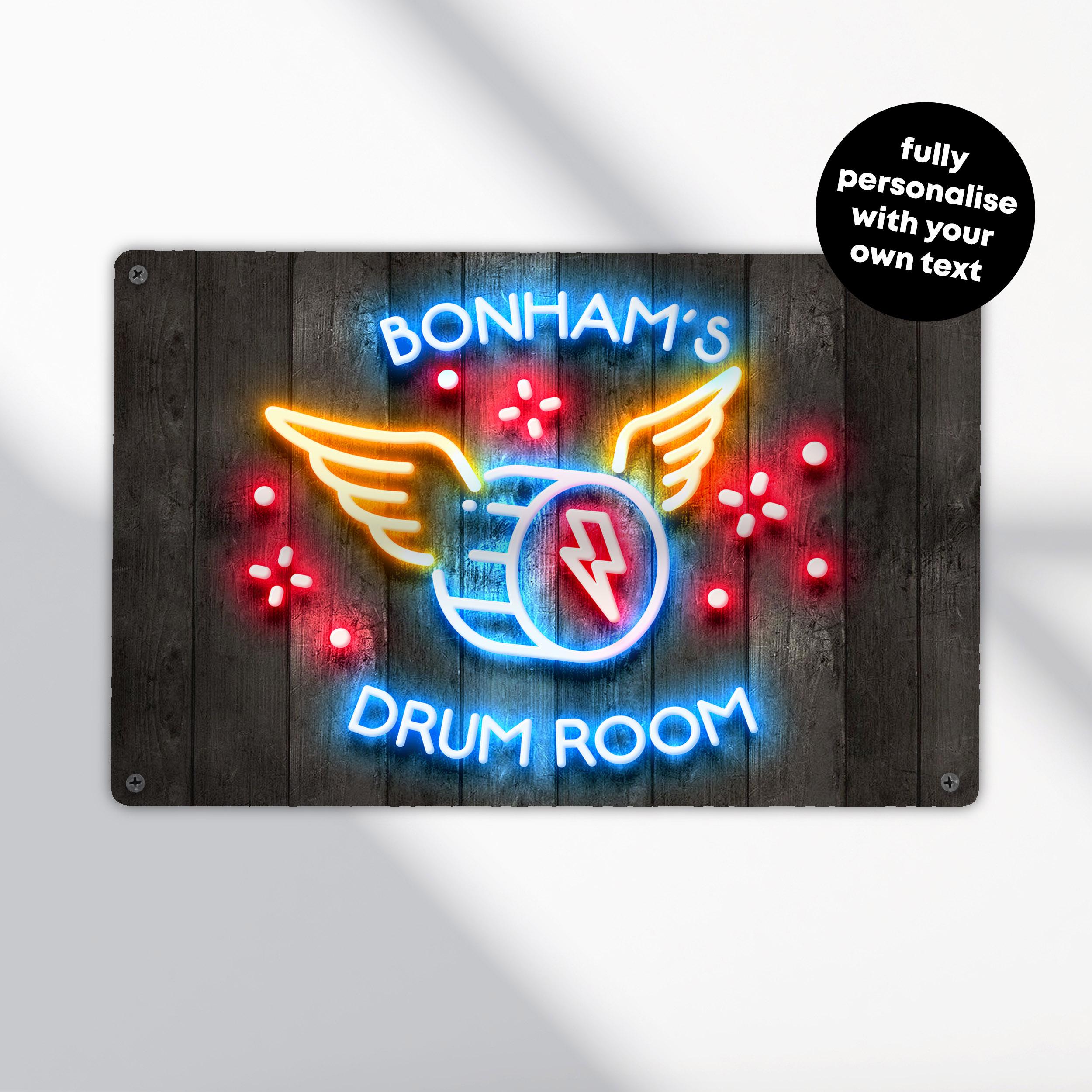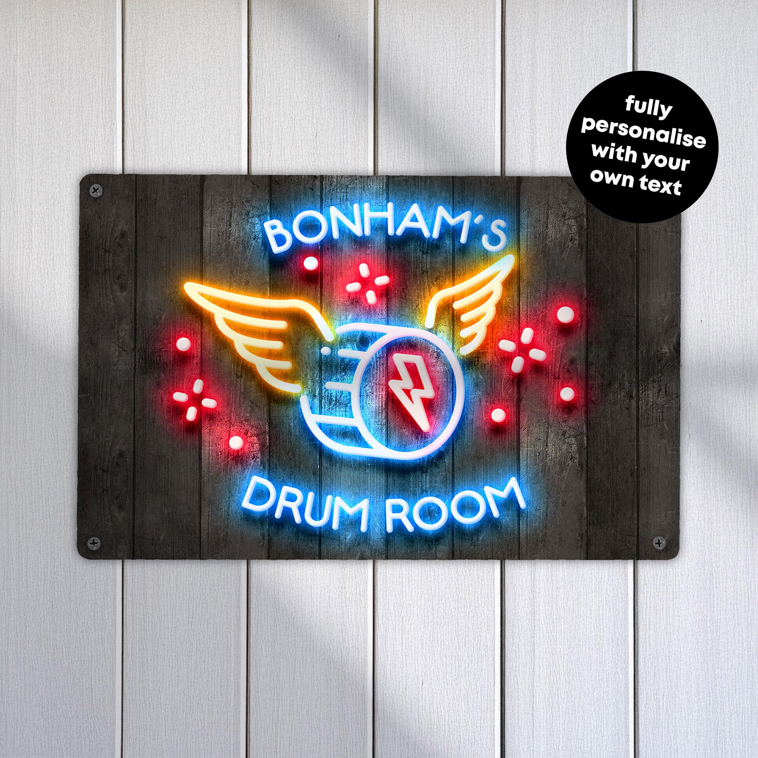 Personalised Drum Room Sign Neon Effect Wall Art Custom Music Studio Decoration Band Practice Plaque