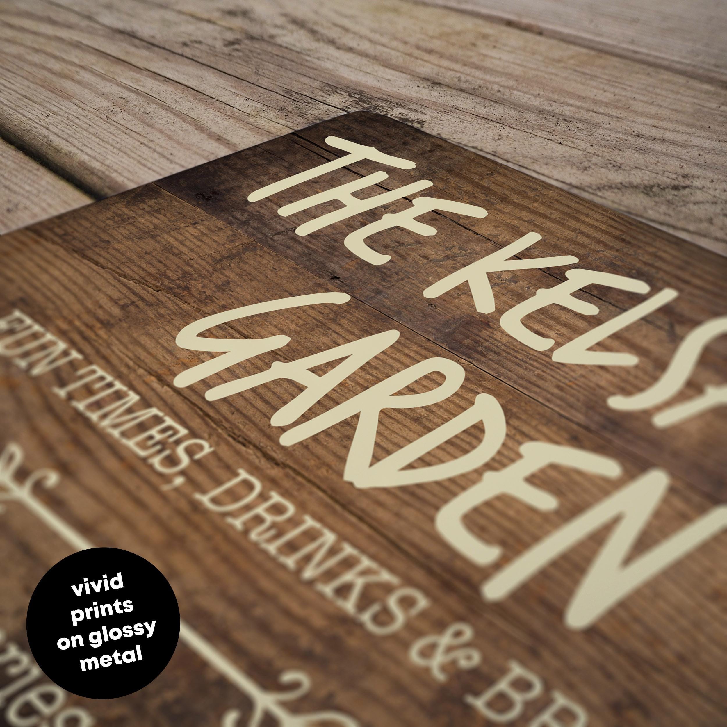 Brighten your outdoor space with this personalised family garden sign, custom printed as a wall sign for sheds, garden bars, or patios. A thoughtful gift idea for families who love their garden, this sign adds character and charm to any outdoor setting.