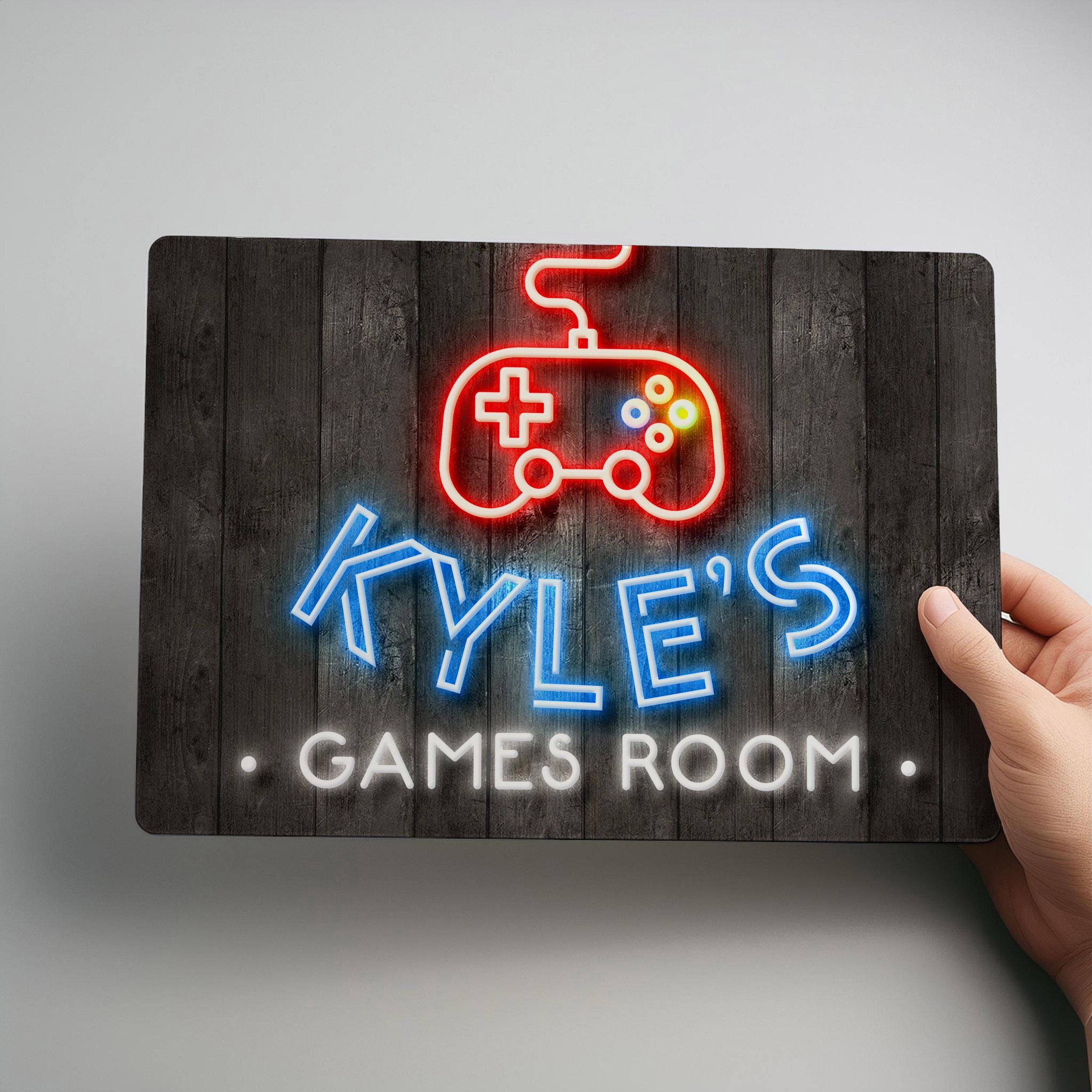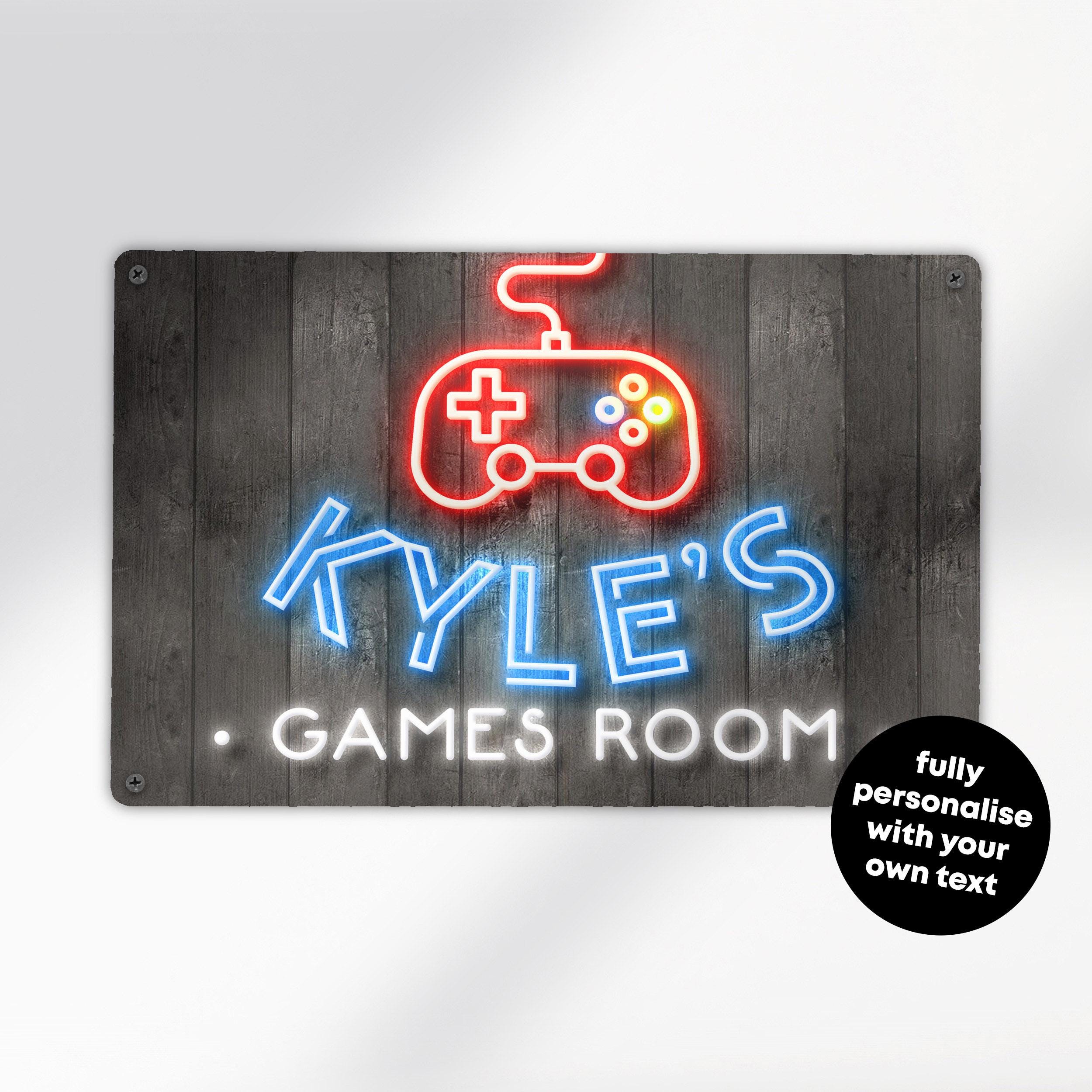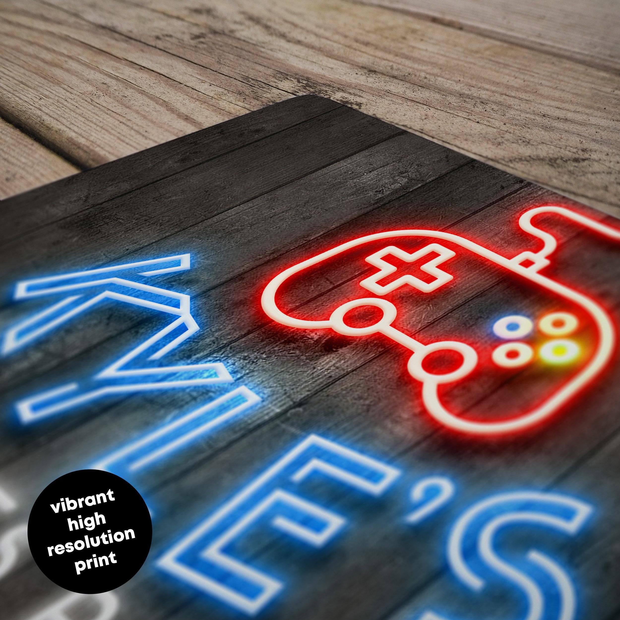 Personalised Games Room Sign Custom Neon Style Printed Wall Art Gamer Lounge Decoration