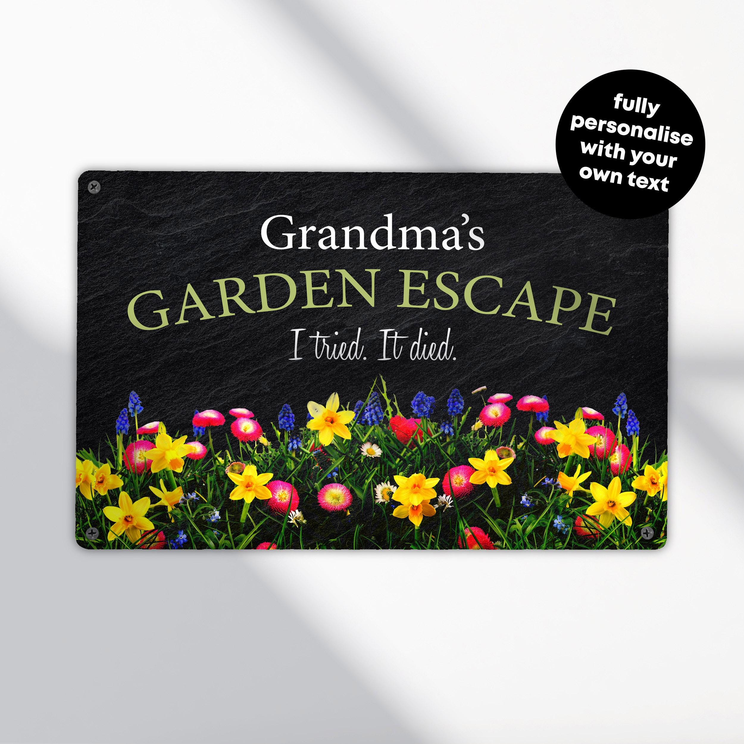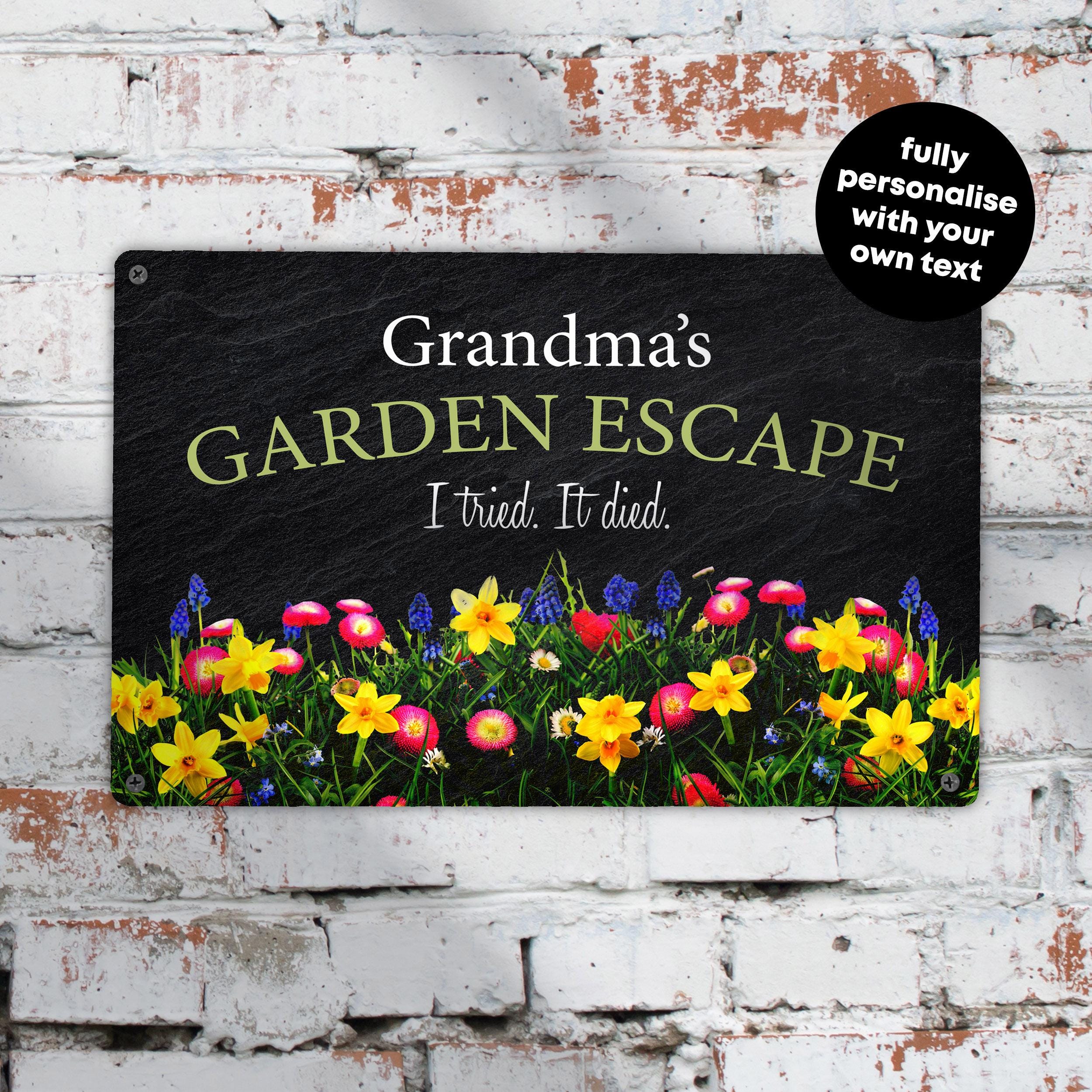 Personalised Garden Escape Sign Custom Aluminium Wall Art Outdoor Allotment Shed Decoration Plaque