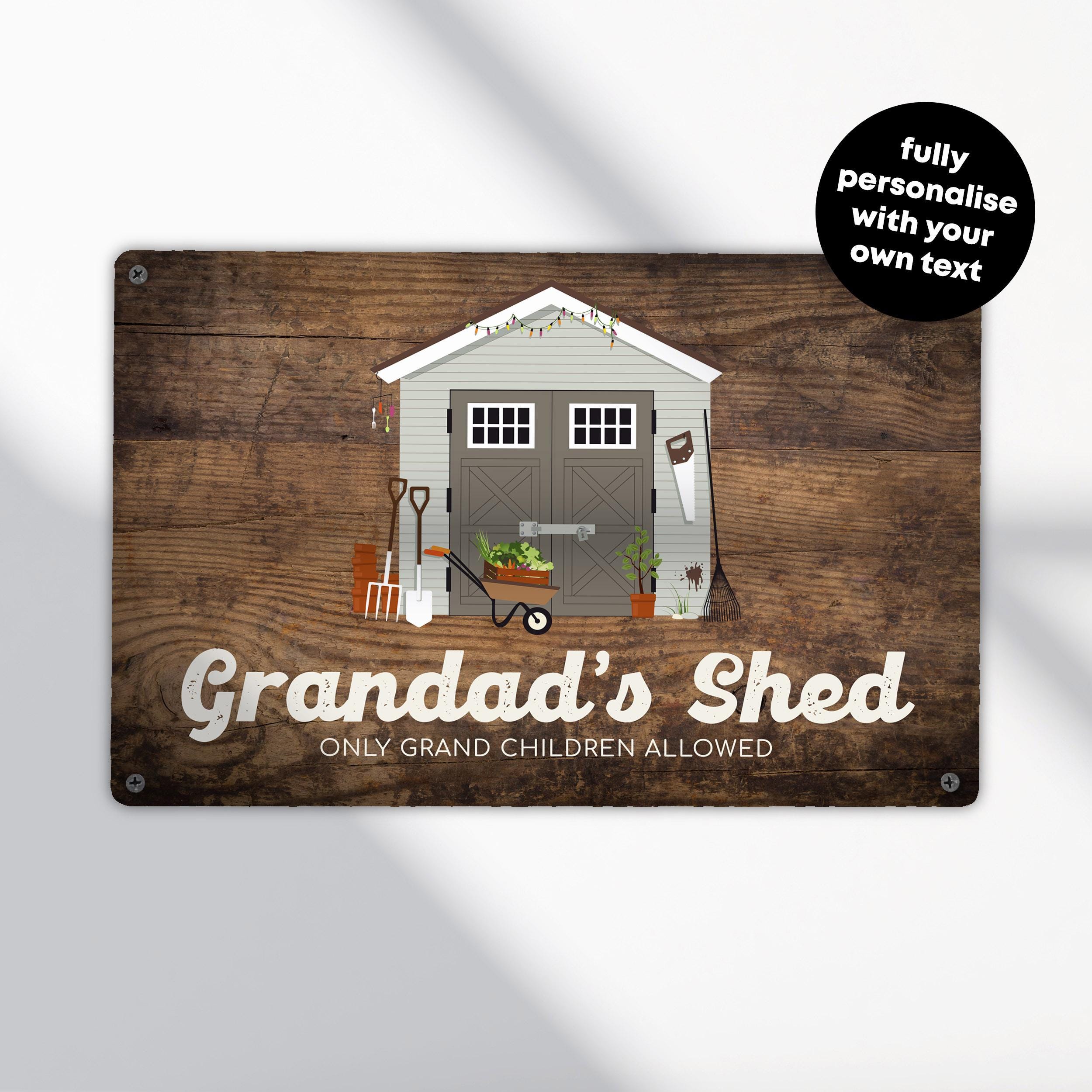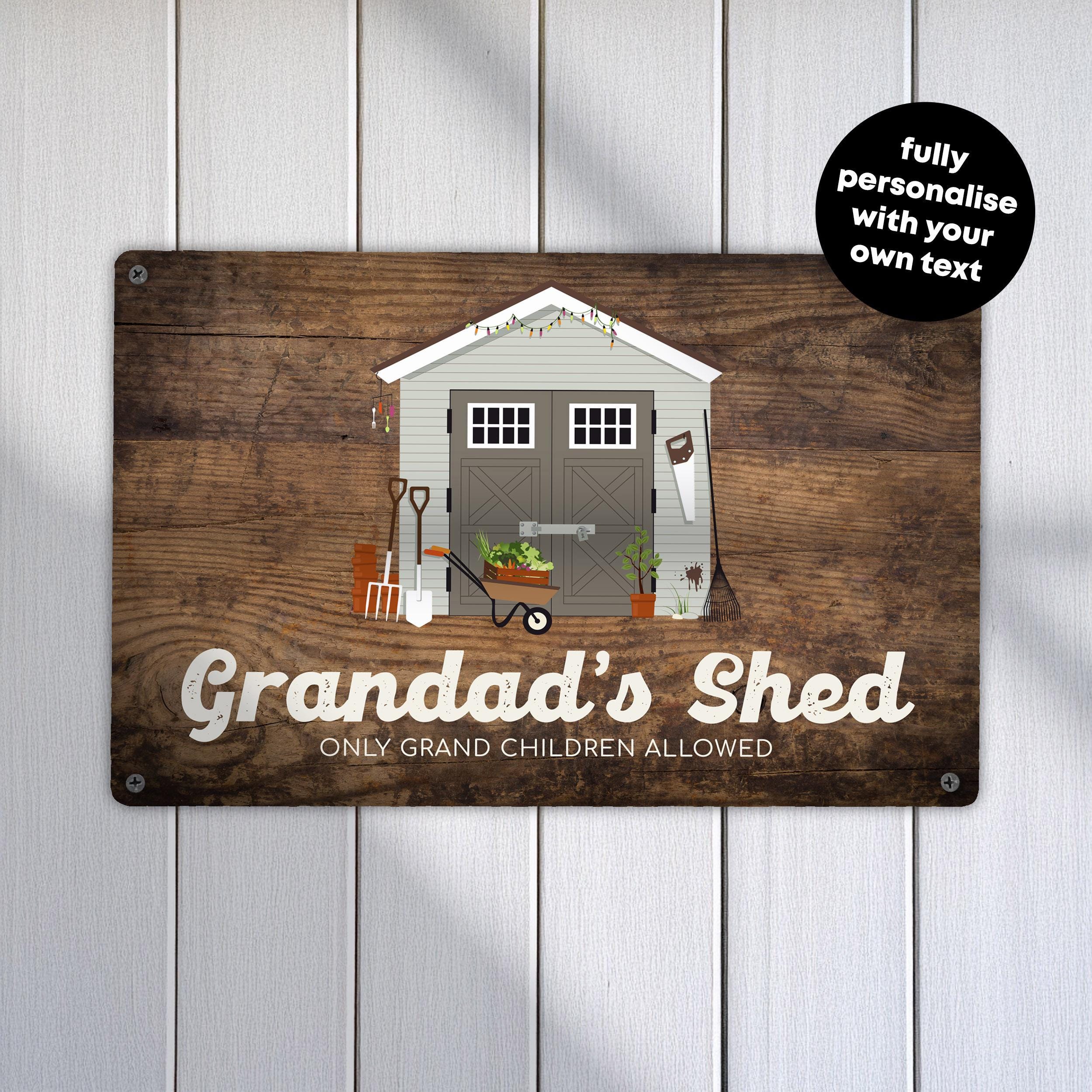 Personalised Grandads Shed Sign Custom Metal Wall Art Rustic Garden Decoration Outdoor Plaque