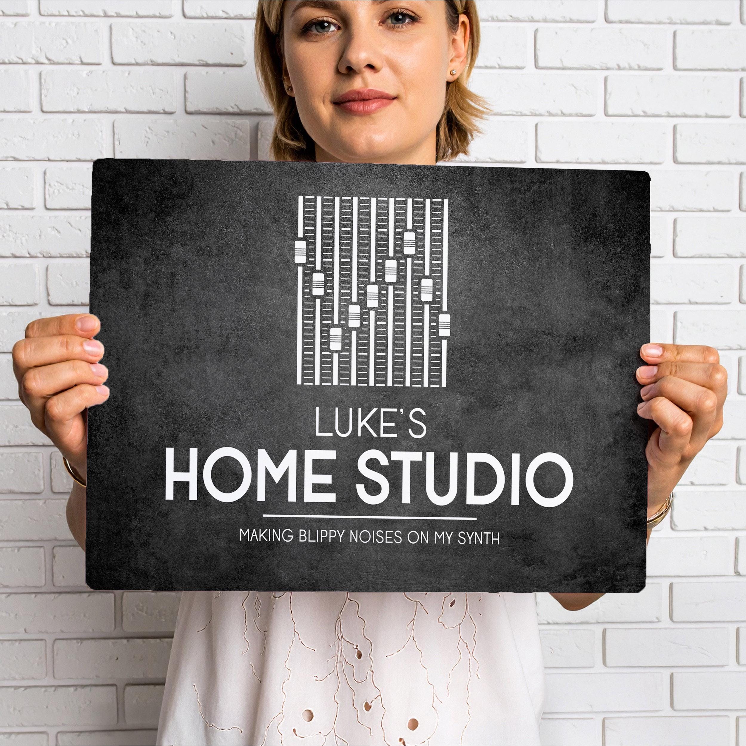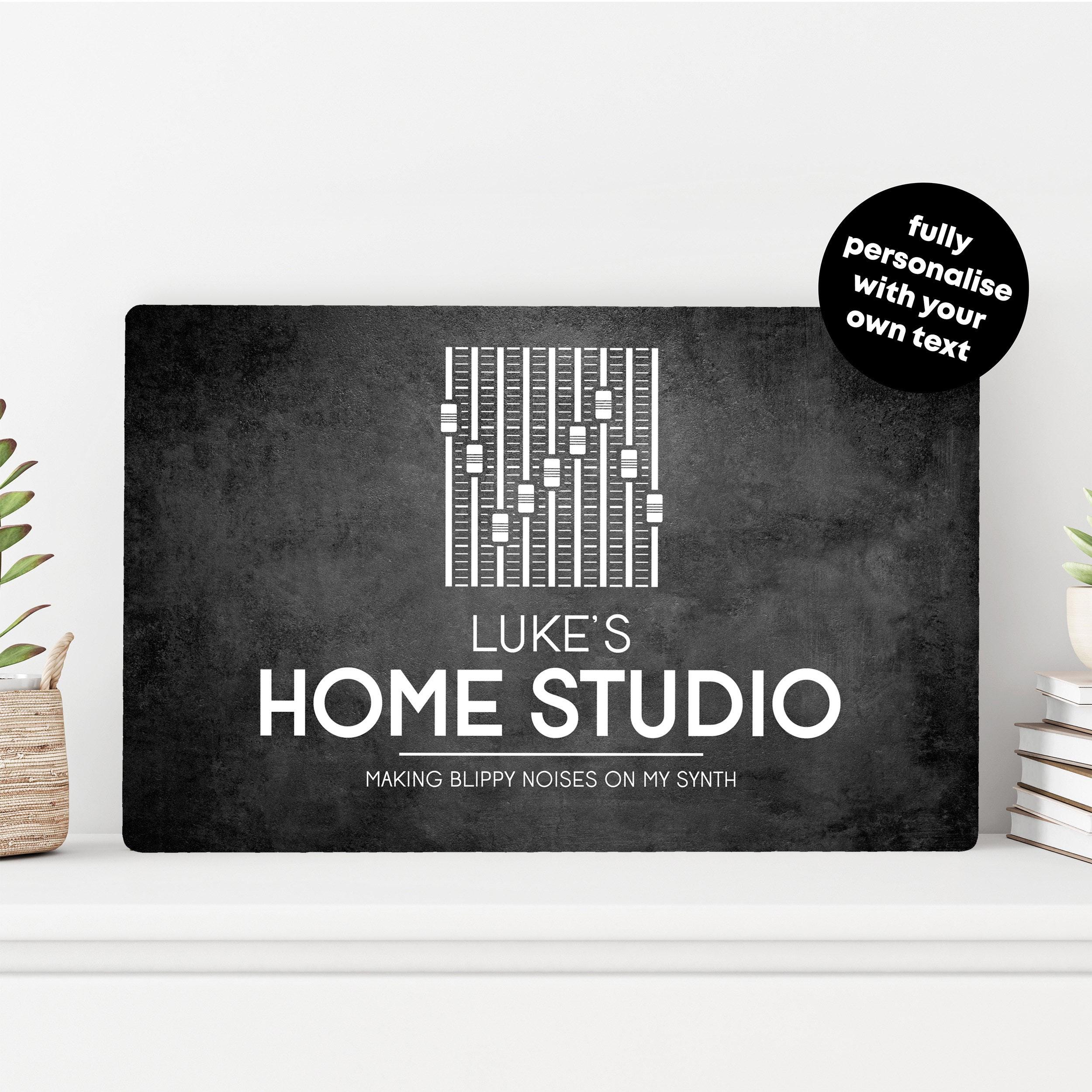 Upgrade your creative space with this Personalised Home Studio Sign – a custom printed plaque perfect for music rooms, recording studios, or audio production areas. It’s a unique gift idea for musicians, producers, content creators, and songwriters who want personalised wall art.