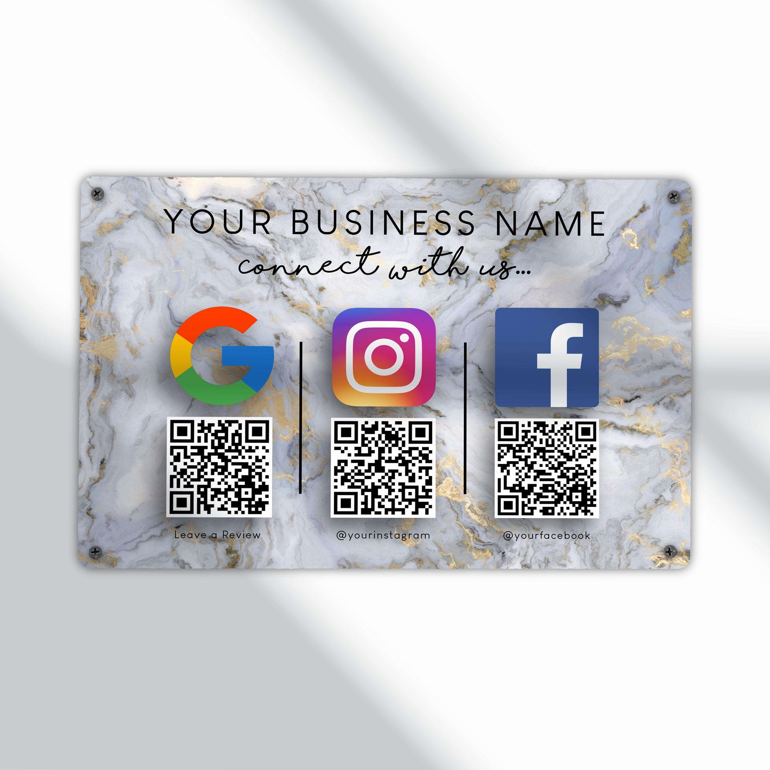 Boost your business visibility with this personalised social media sign featuring a scannable QR code for Facebook, Instagram, TikTok, Google, website links, or customer reviews – anything you like. Perfect for salons, boutiques, and small shops, this eye-catching display helps customers connect and follow your business instantly.