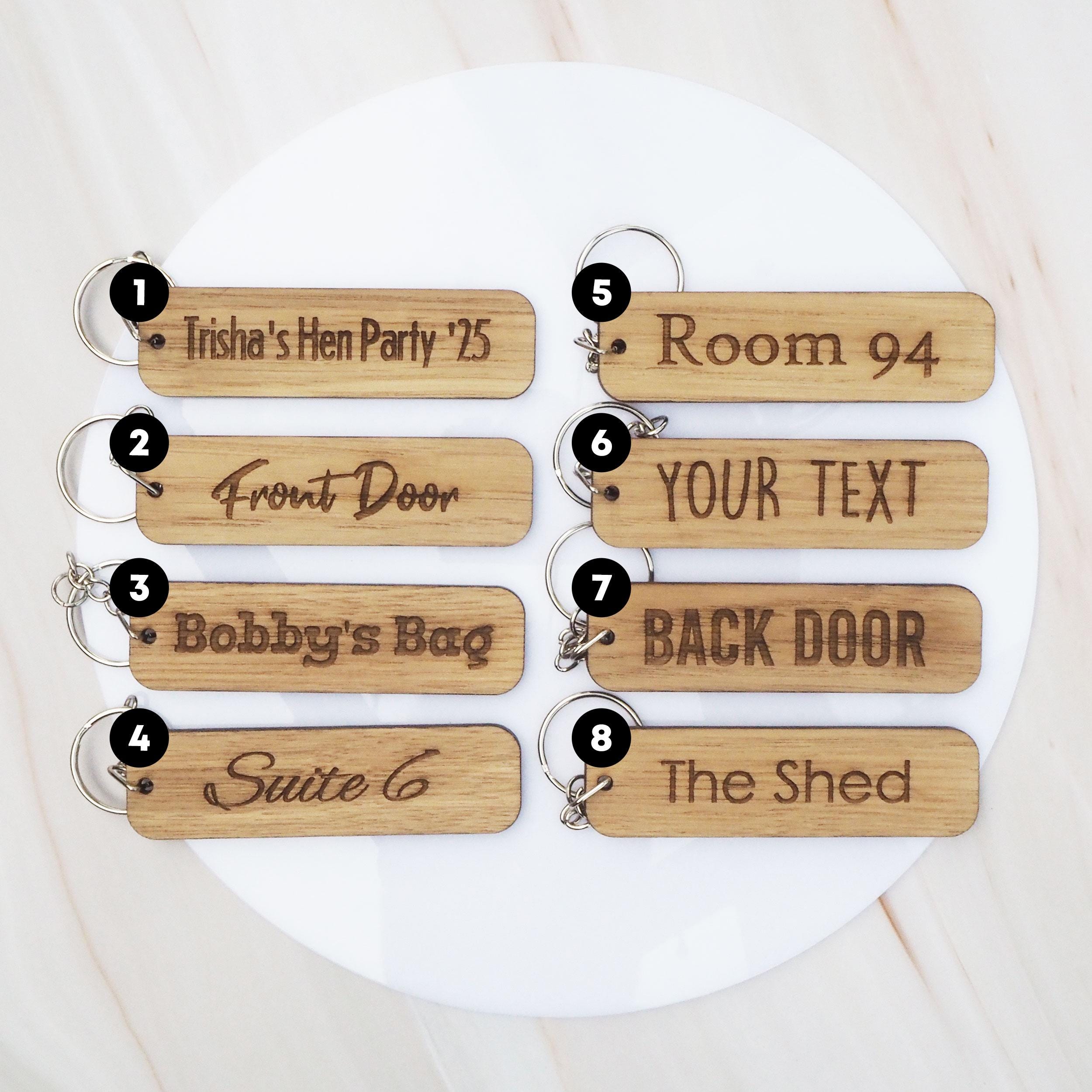 These personalised wooden keyrings are ideal for birthdays, hotel room keys, luggage tags, or everyday use. Custom engraved with your text, they make thoughtful and practical gifts for friends, family, or guests, adding a stylish touch to keys, bags, and more.