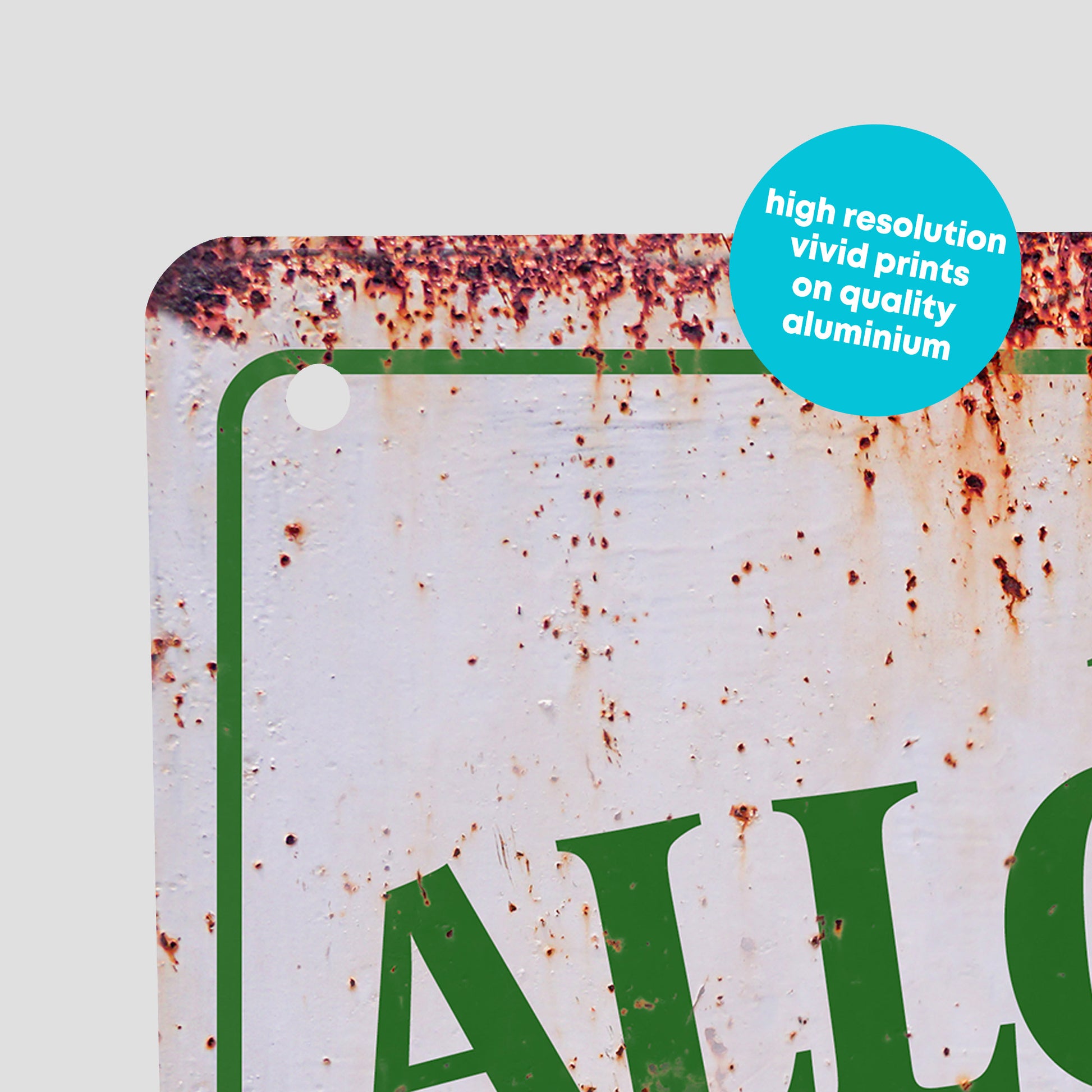 - Holes in the top - We'll put holes in the top two corners of the sign meaning it can be either hung or screwed in place.