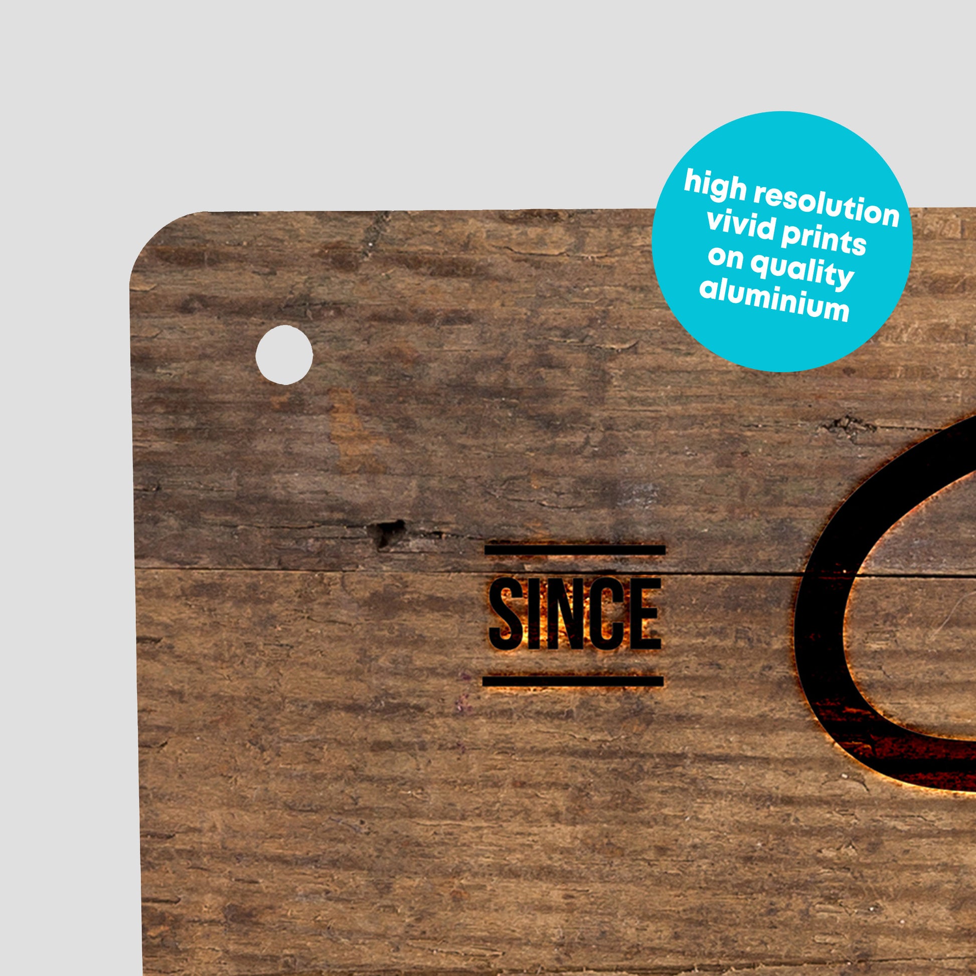All of our signs are sublimation printed on aluminium which is approximately 0.5mm thick. Signs can be used indoors or outdoors but should be kept away from direct sunlight.
