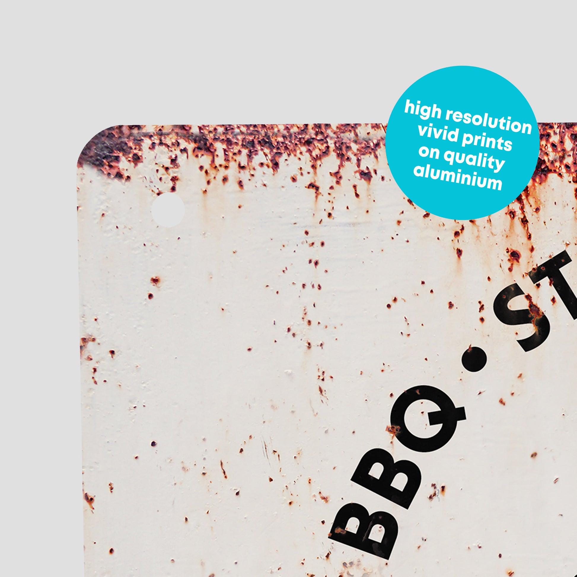 All of our signs are sublimation printed on aluminium which is approximately 0.5mm thick. Signs can be used indoors or outdoors but should be kept away from direct sunlight.