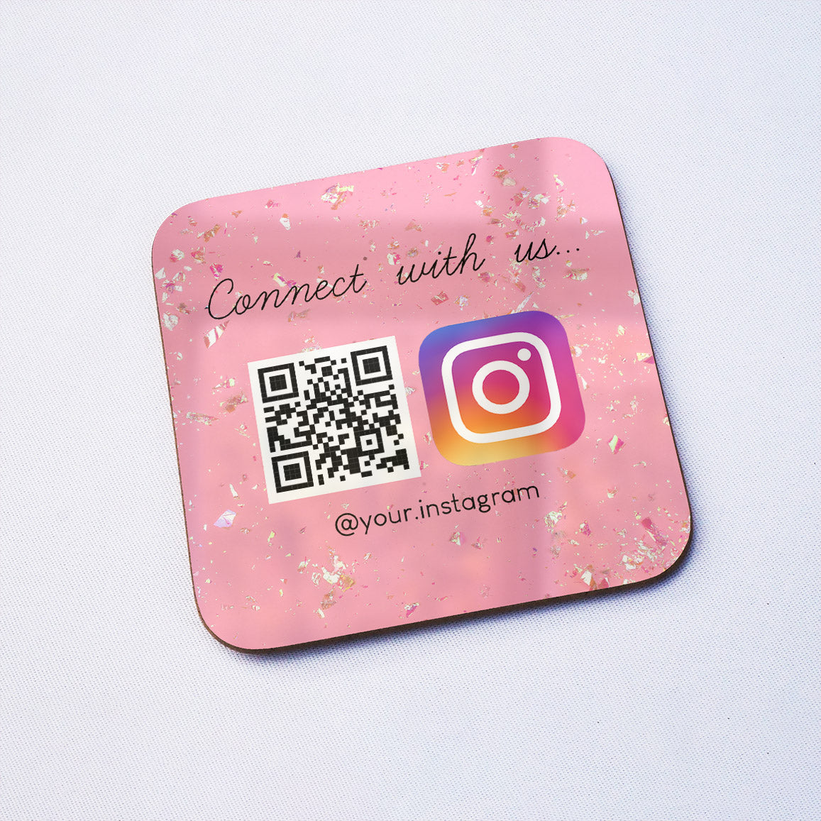 Don't worry about providing the QR code, we'll generate that for you. And it doesn't need to be Instagram either - we can put any social network on your coaster.