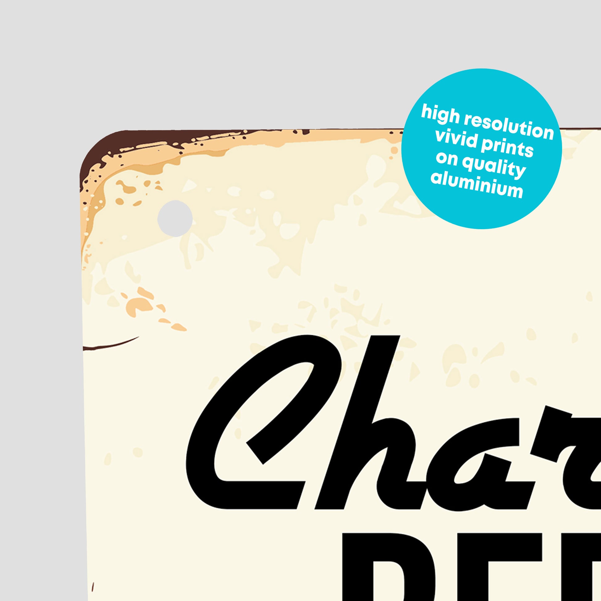 All of our signs are sublimation printed on aluminium which is approximately 0.5mm thick. Signs can be used indoors or outdoors but should be kept away from direct sunlight.