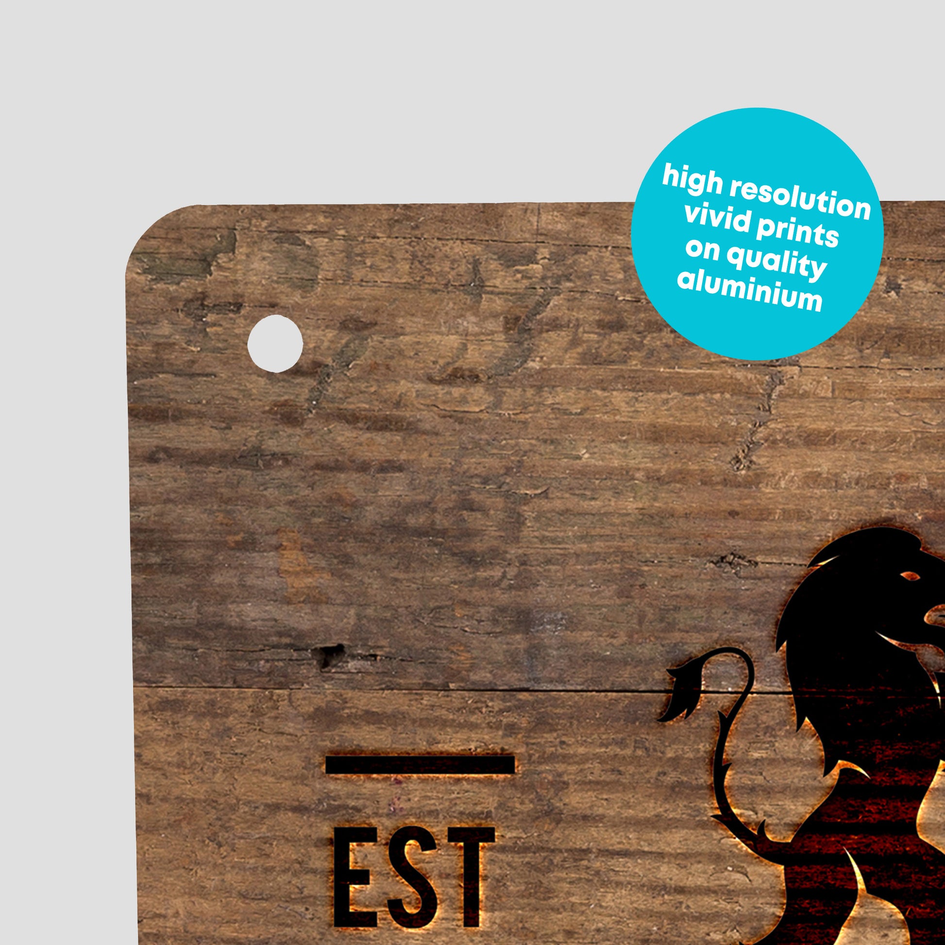 All of our signs are sublimation printed on aluminium which is approximately 0.5mm thick. Signs can be used indoors or outdoors but should be kept away from direct sunlight.