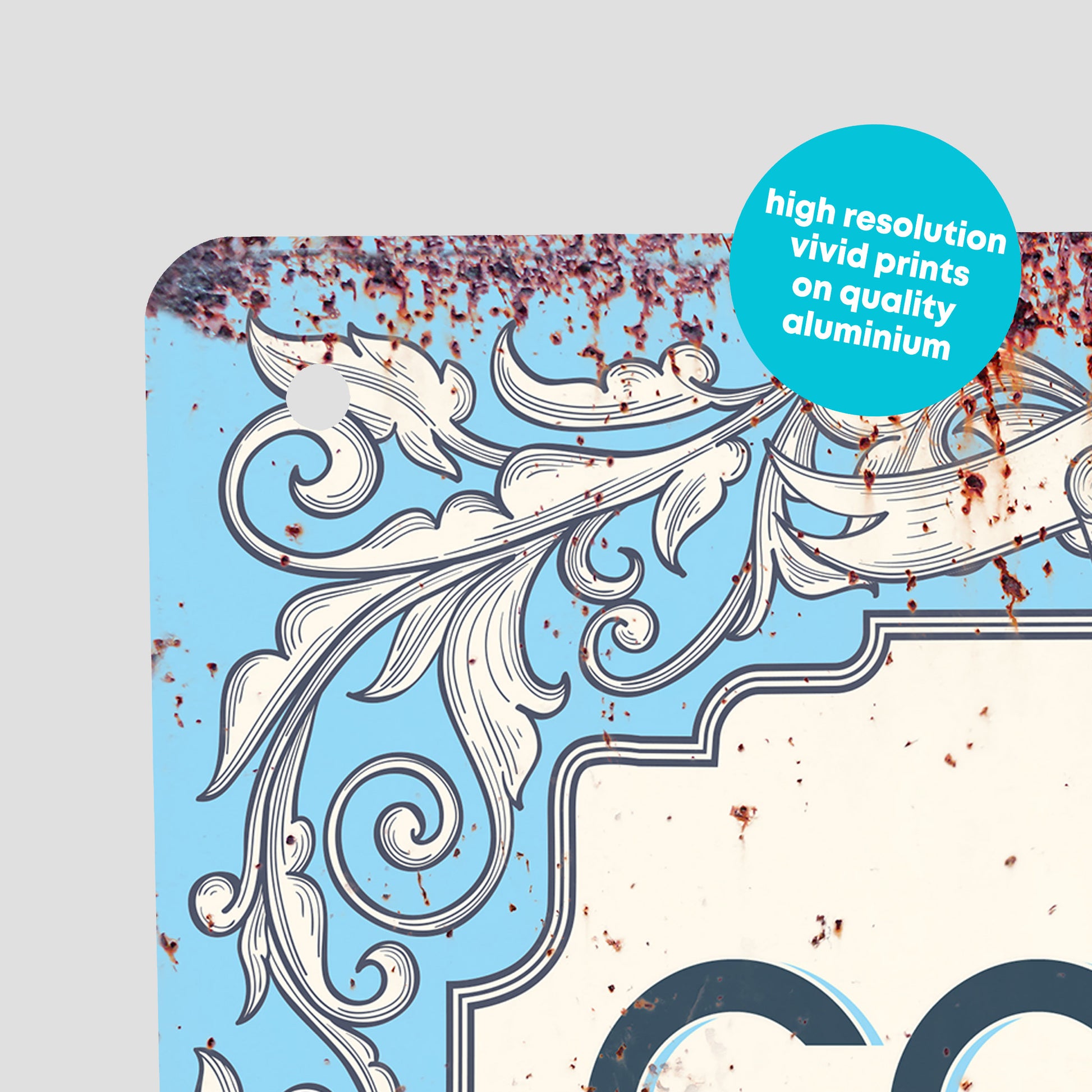 All of our signs are sublimation printed on aluminium which is approximately 0.5mm thick. Signs can be used indoors or outdoors but should be kept away from direct sunlight.