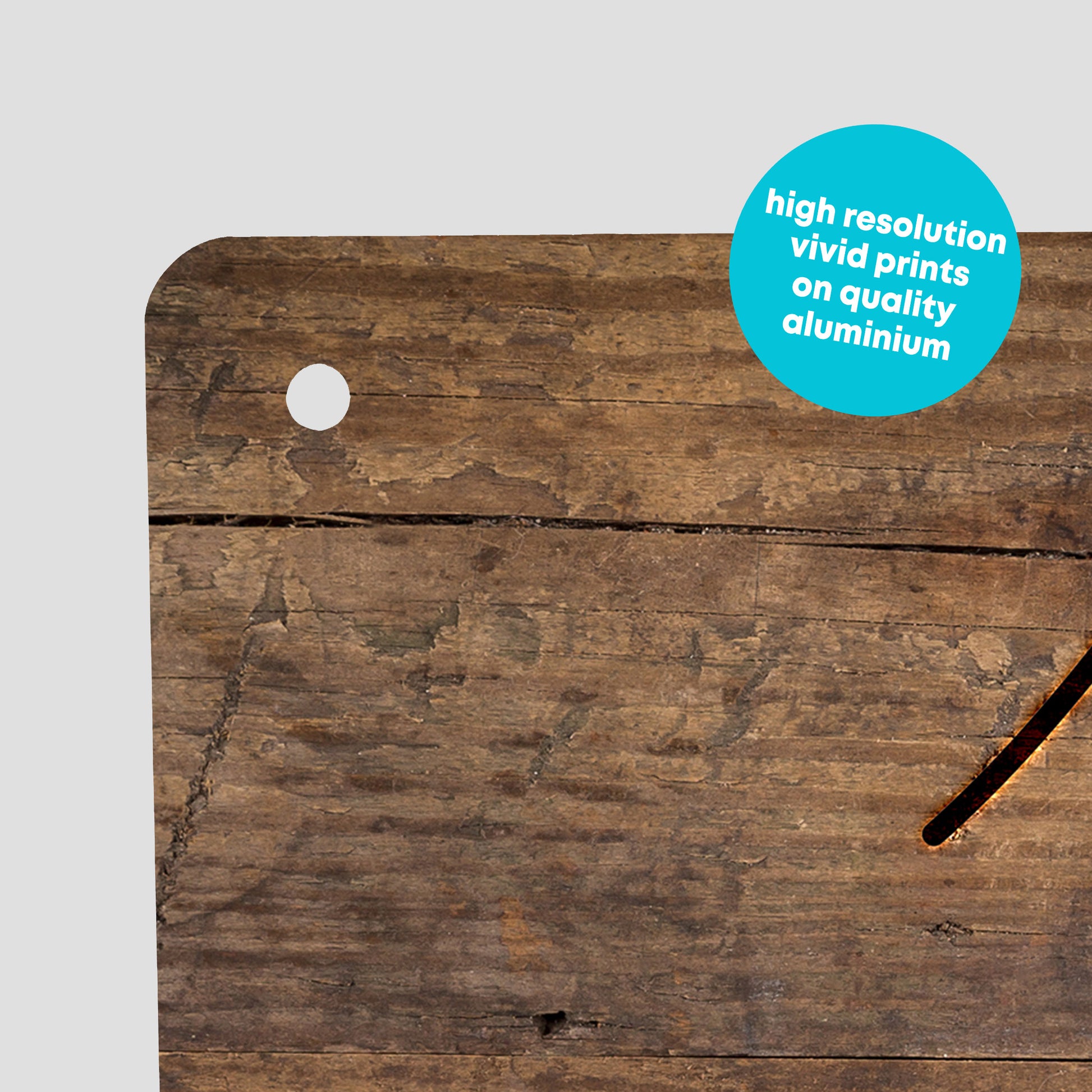 All of our signs are sublimation printed on aluminium which is approximately 0.5mm thick. Signs can be used indoors or outdoors but should be kept away from direct sunlight.