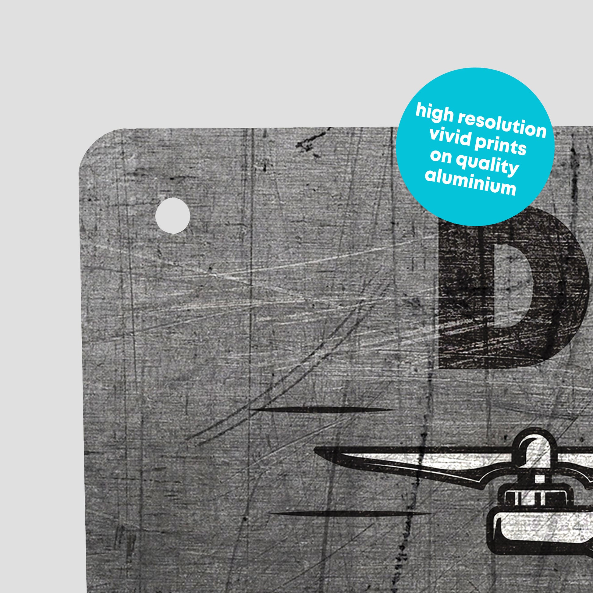 All of our signs are sublimation printed on aluminium which is approximately 0.5mm thick. Signs can be used indoors or outdoors but should be kept away from direct sunlight.