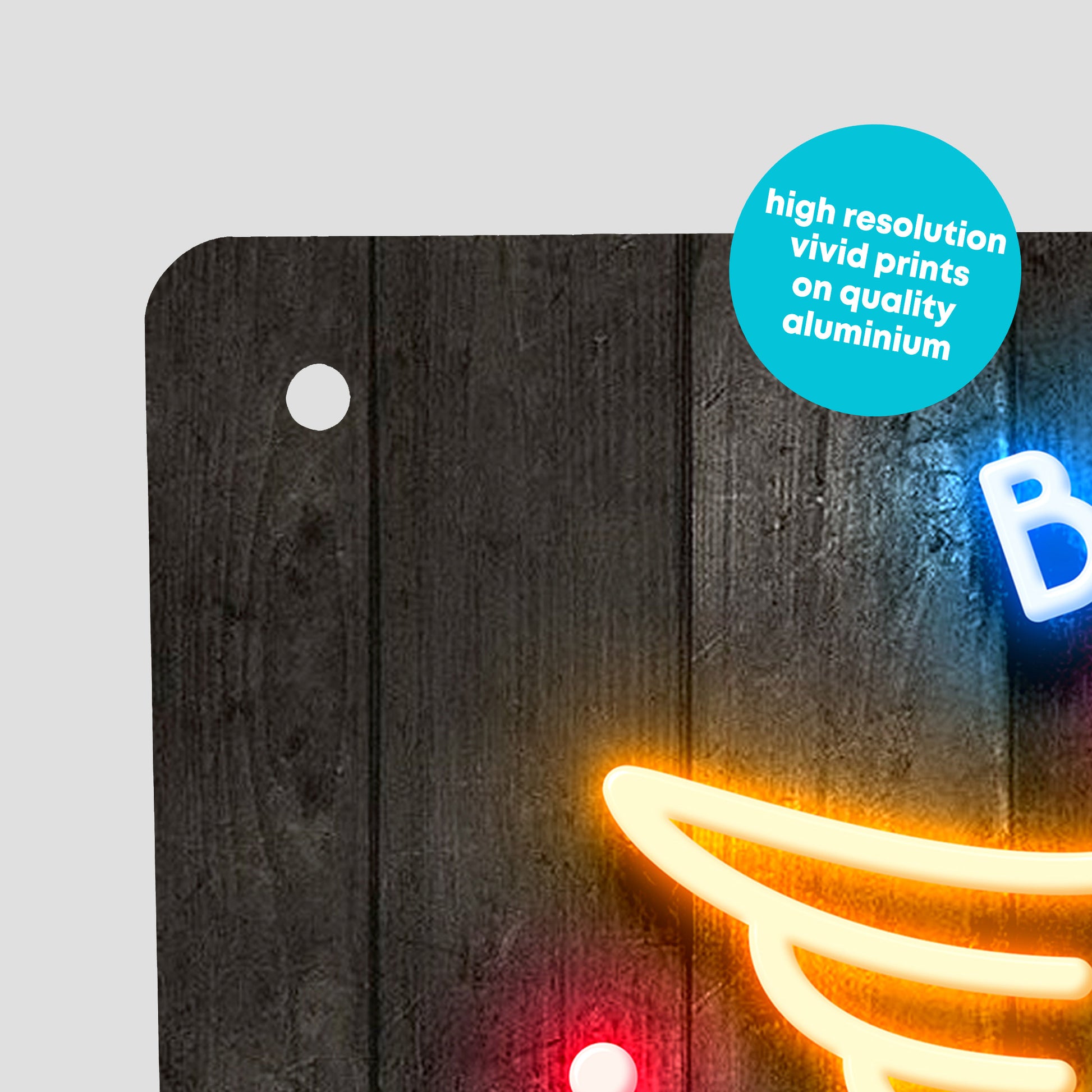All of our signs are sublimation printed on aluminium which is approximately 0.5mm thick. Signs can be used indoors or outdoors but should be kept away from direct sunlight.