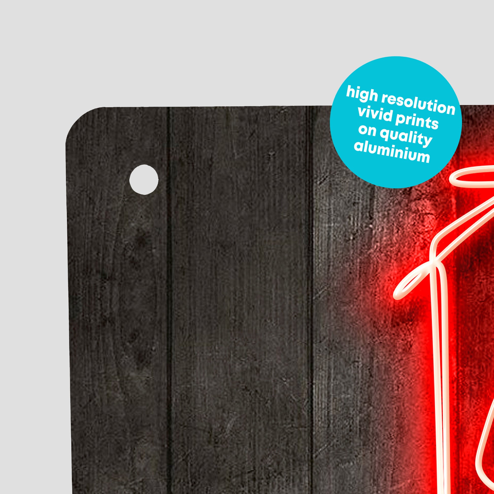 All of our signs are sublimation printed on aluminium which is approximately 0.5mm thick. Signs can be used indoors or outdoors but should be kept away from direct sunlight.
