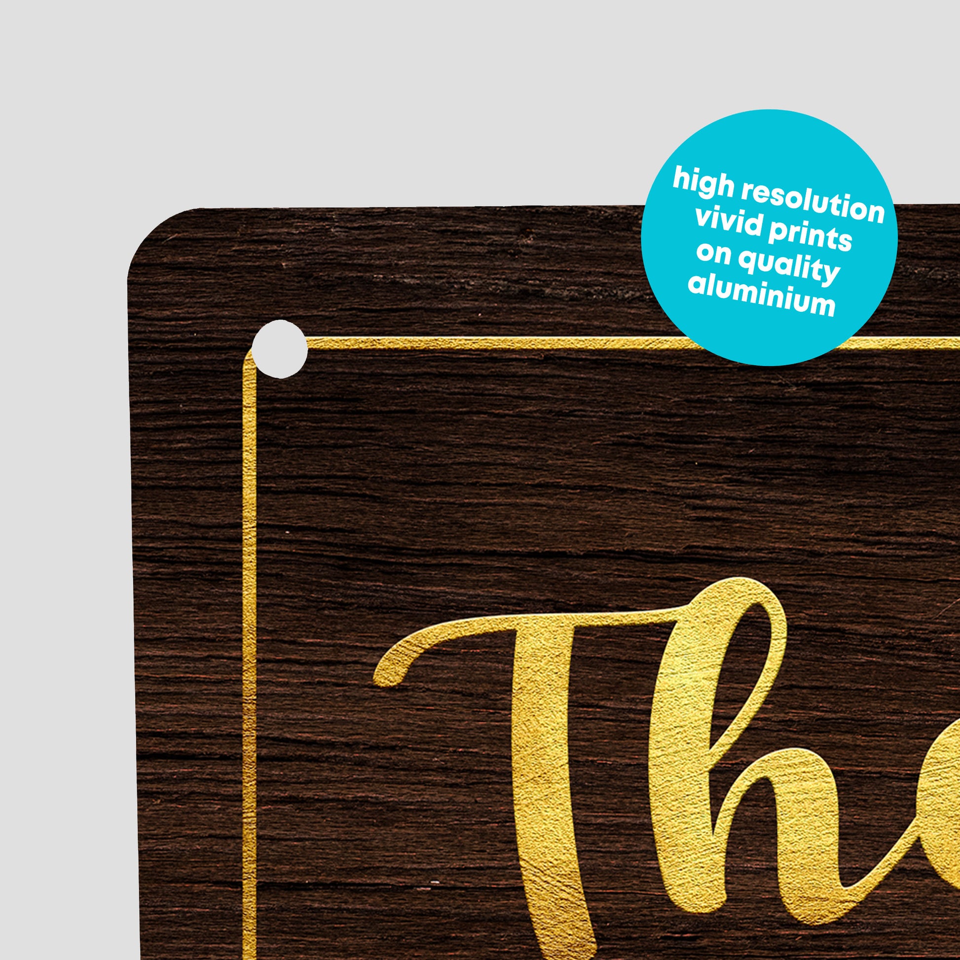 All of our signs are sublimation printed on aluminium which is approximately 0.5mm thick. Signs can be used indoors or outdoors but should be kept away from direct sunlight.