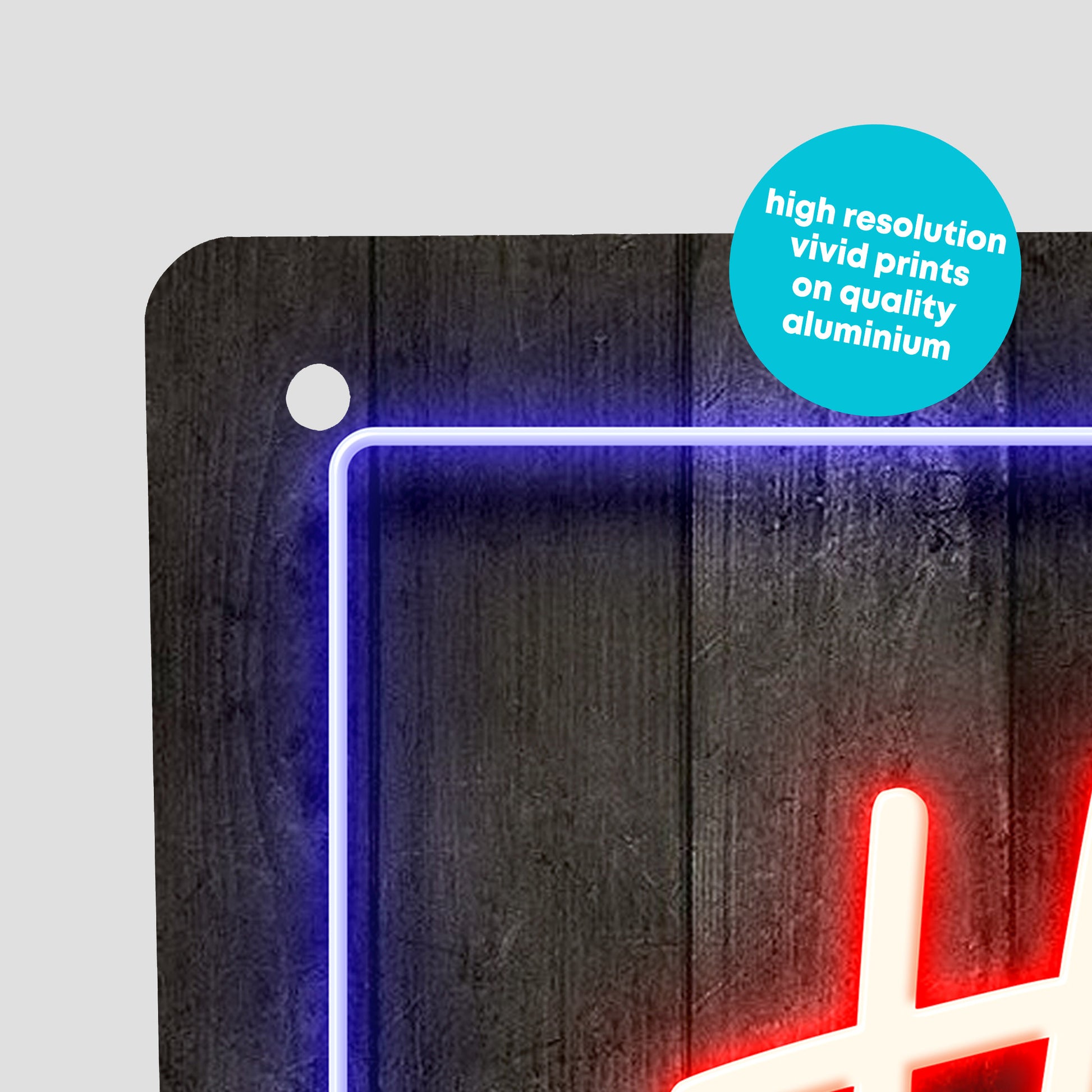 All of our signs are sublimation printed on aluminium which is approximately 0.5mm thick. Signs can be used indoors or outdoors but should be kept away from direct sunlight.