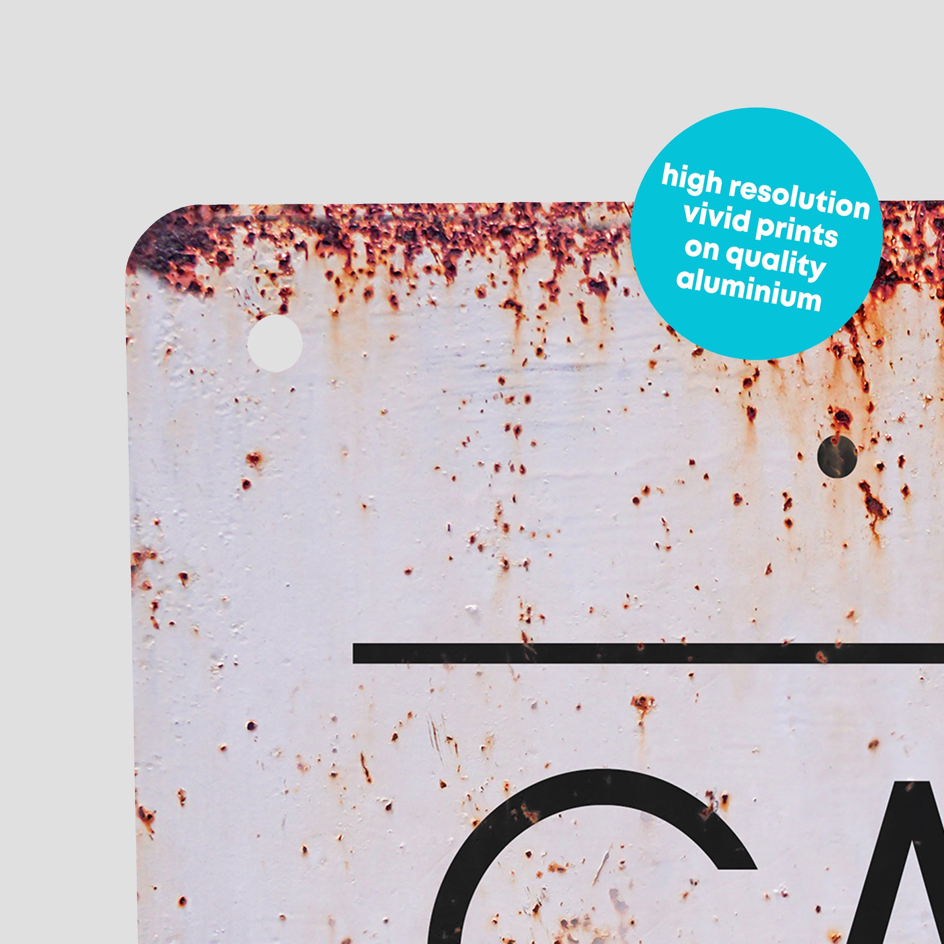 All of our signs are sublimation printed on aluminium which is approximately 0.5mm thick. Signs can be used indoors or outdoors but should be kept away from direct sunlight.