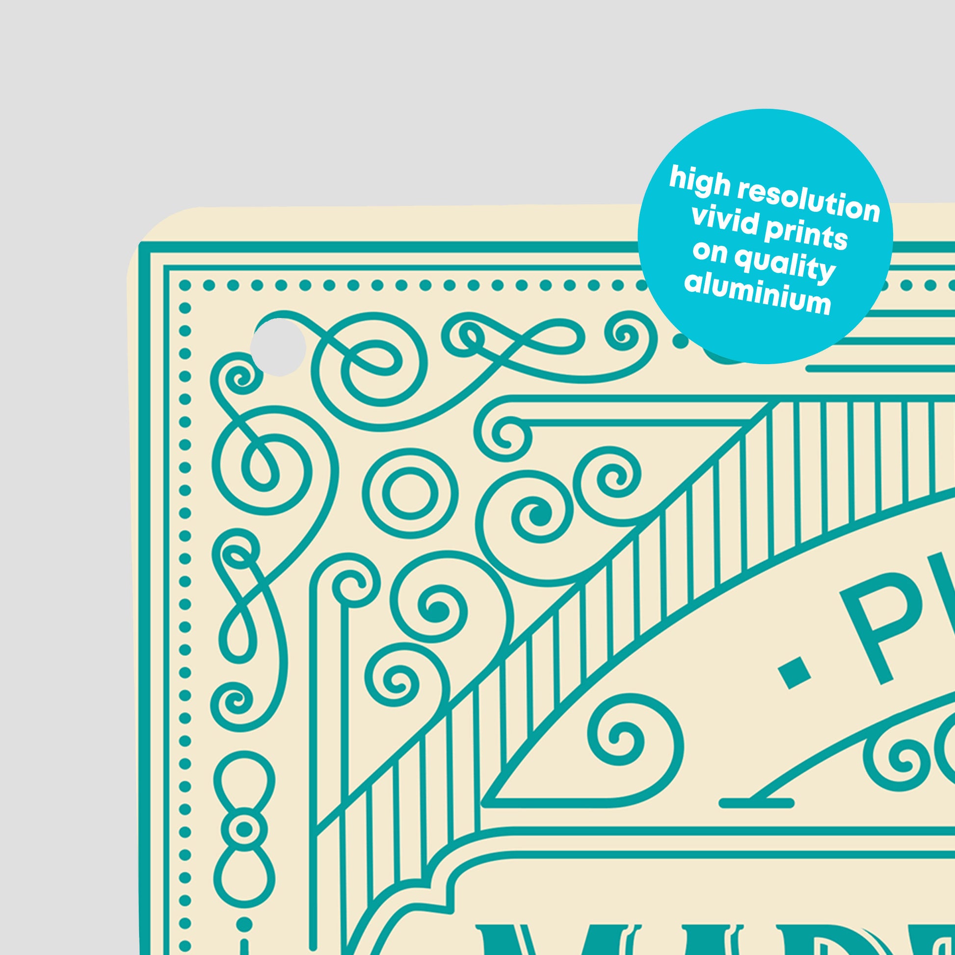 All of our signs are sublimation printed on aluminium which is approximately 0.5mm thick. Signs can be used indoors or outdoors but should be kept away from direct sunlight.
