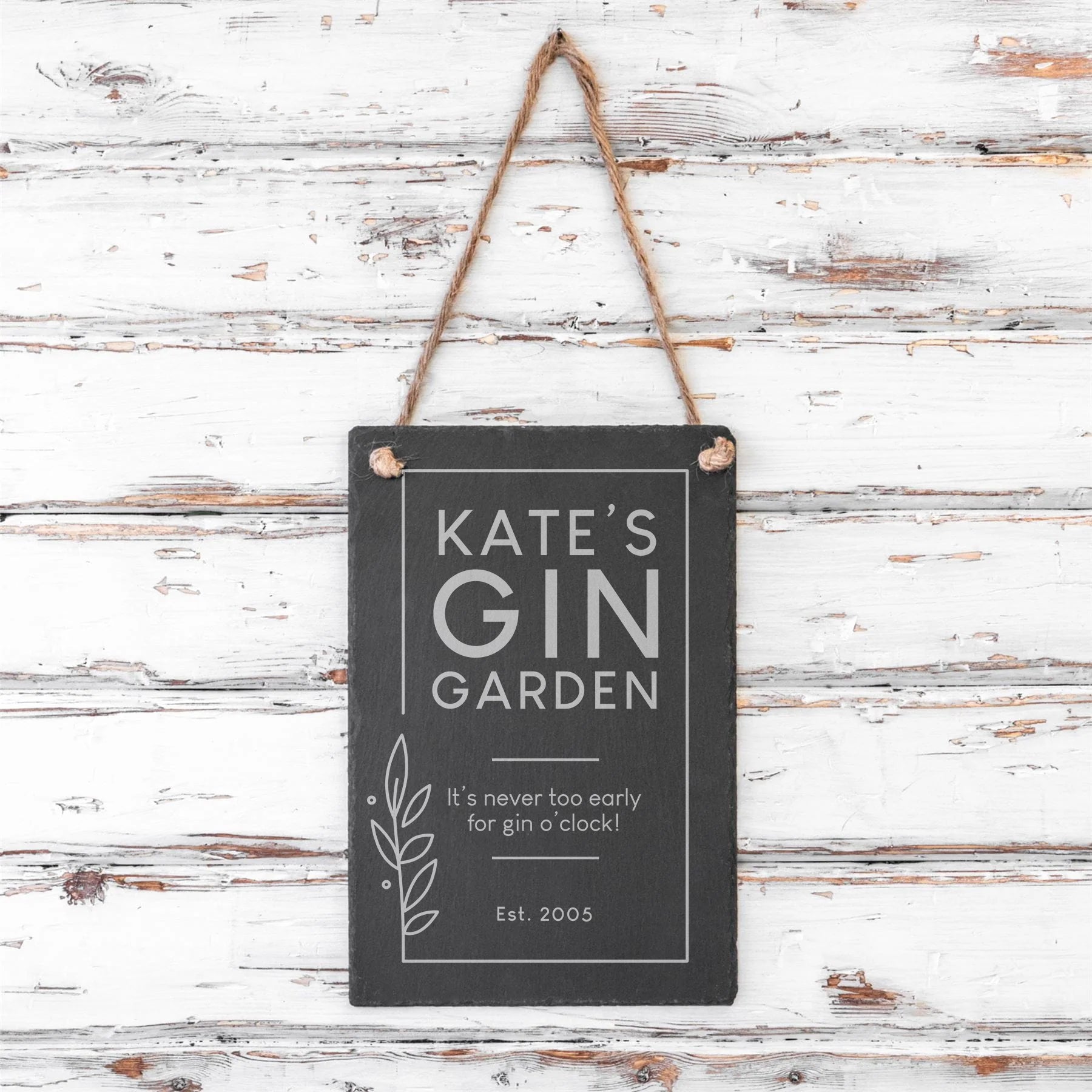 Gin Garden Personalised Engraved Slate Hanging Sign