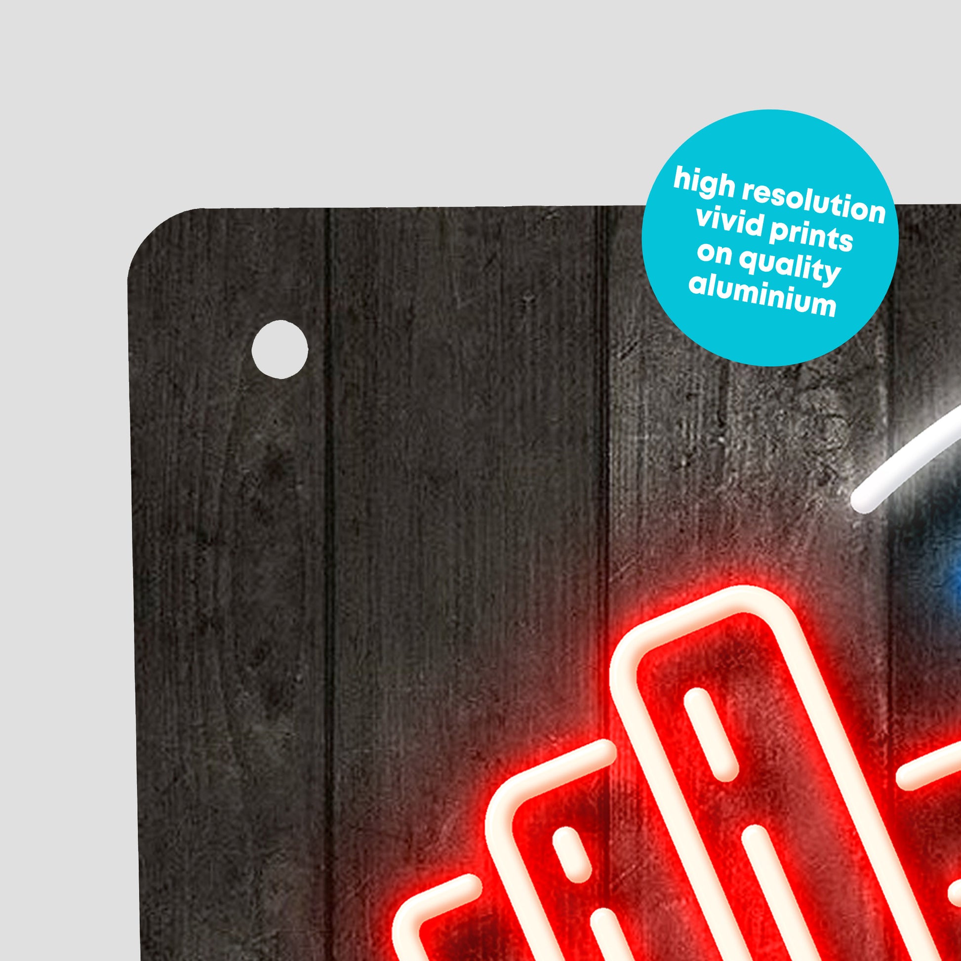 All of our signs are sublimation printed on aluminium which is approximately 0.5mm thick. Signs can be used indoors or outdoors but should be kept away from direct sunlight.