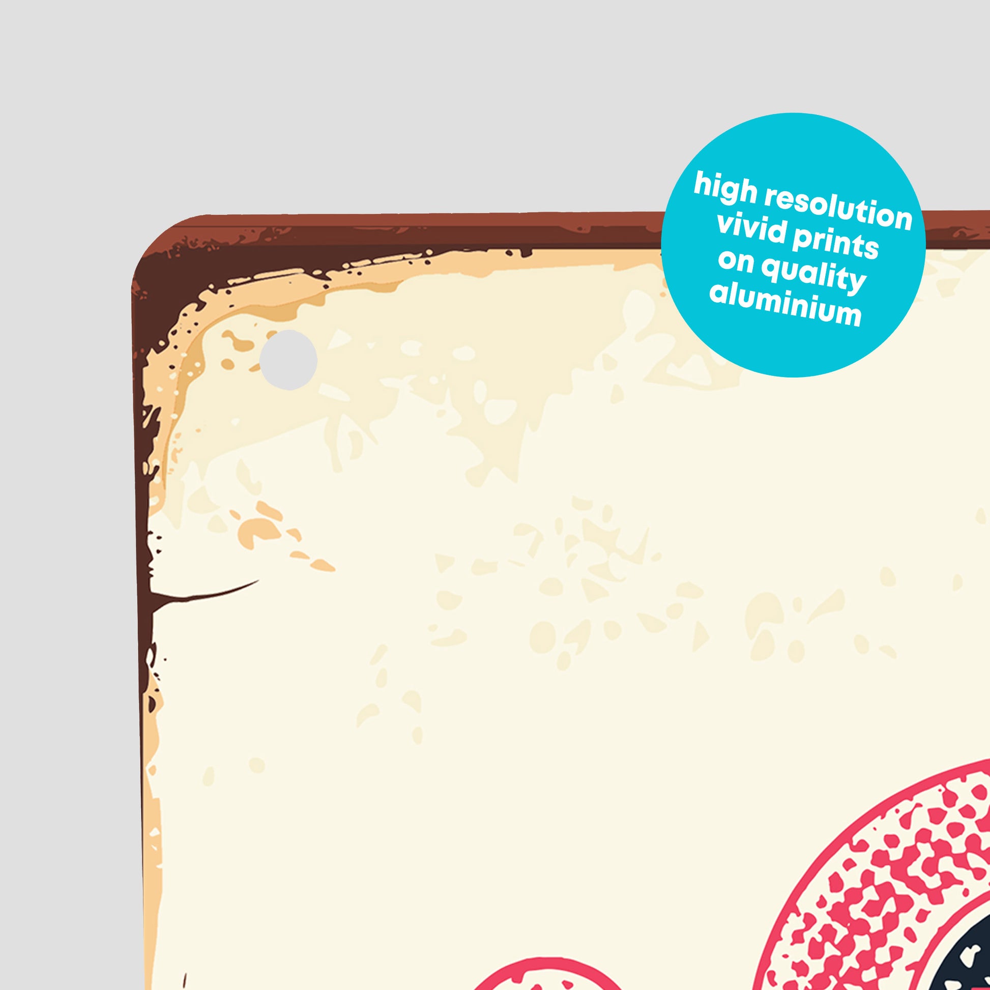 All of our signs are sublimation printed on aluminium which is approximately 0.5mm thick. Signs can be used indoors or outdoors but should be kept away from direct sunlight.