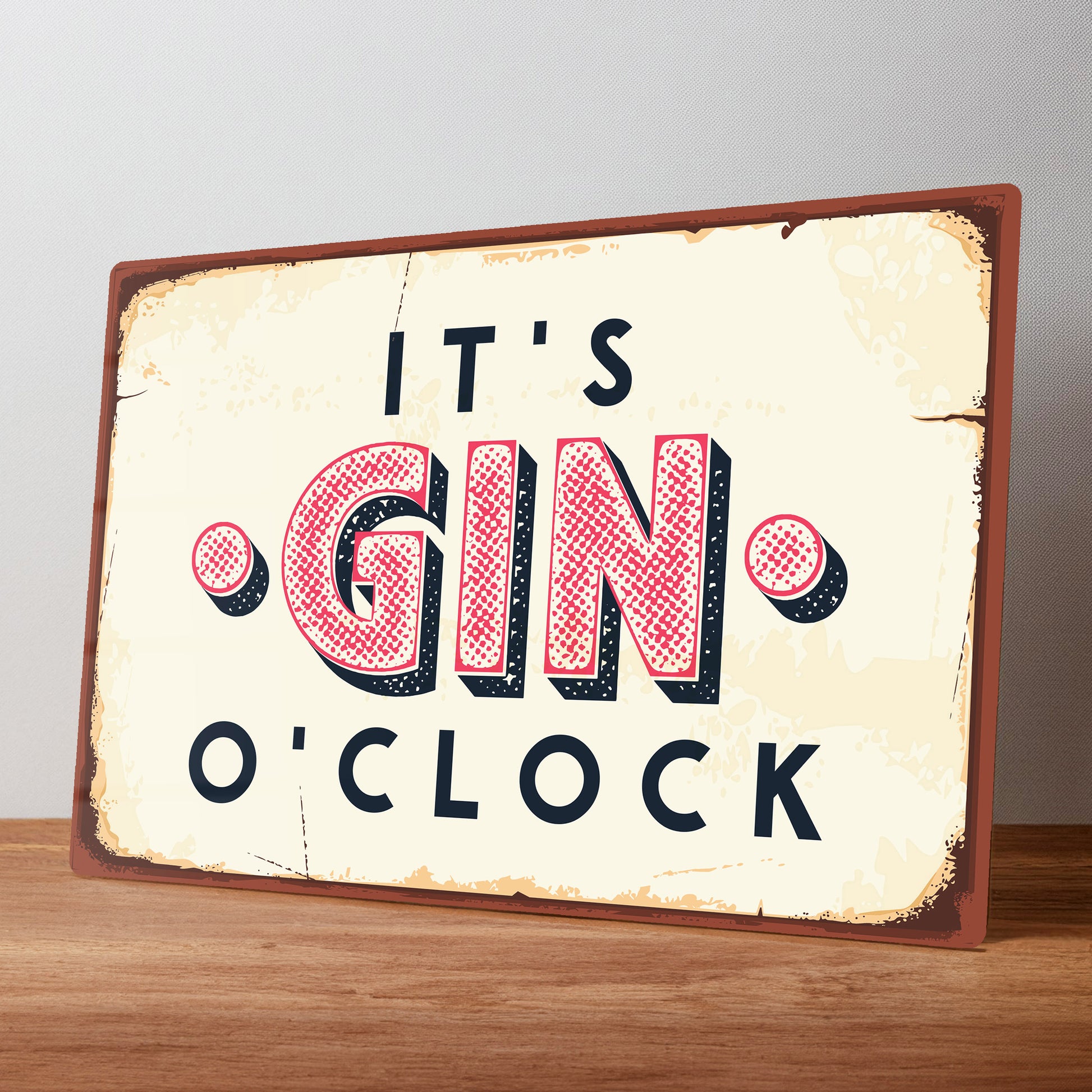 It's Gin O'Clock Rustic Metal Home Bar Wall Sign