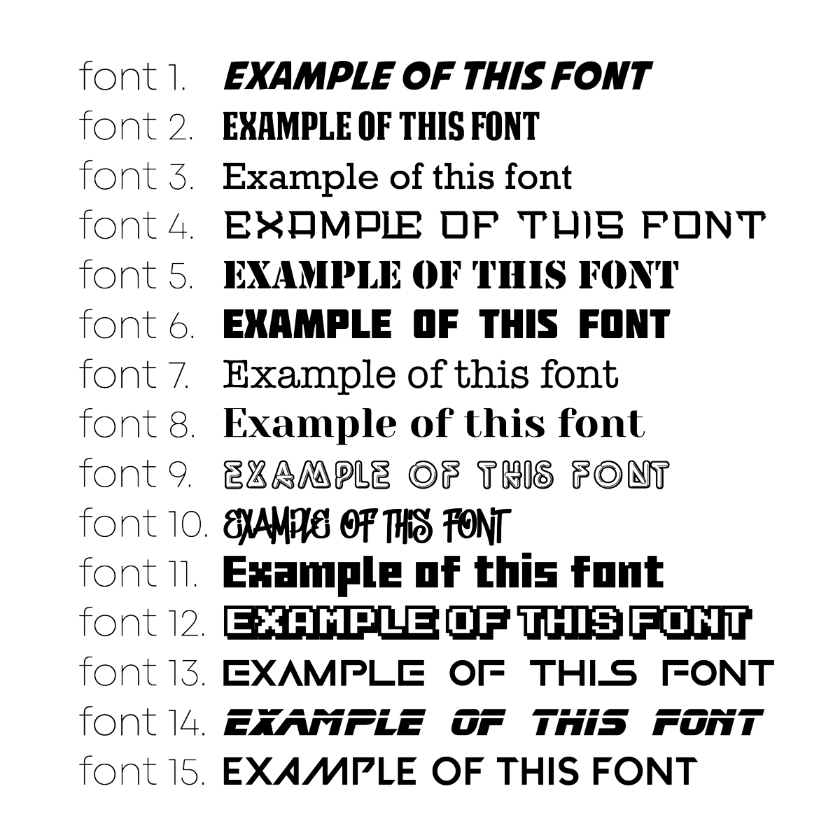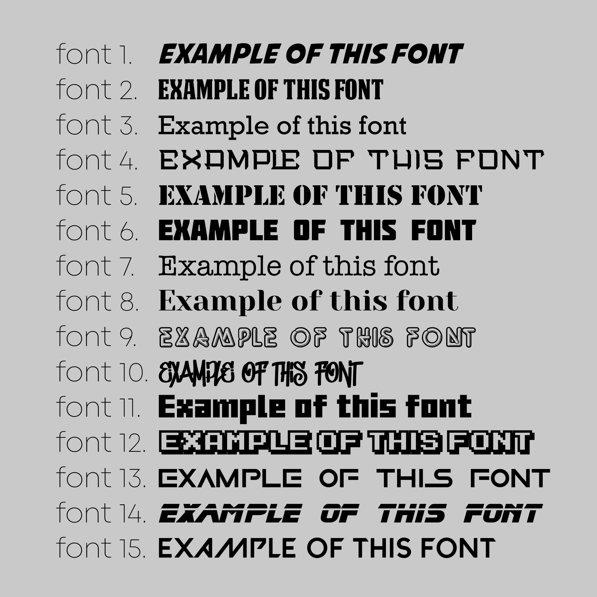 There are 15 fonts to choose from (see photos for example) to match your style. From retro to modern, the choice is totally yours.