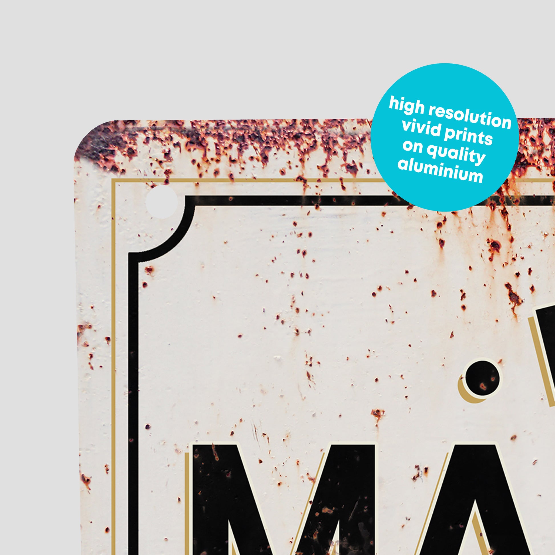 All of our signs are sublimation printed on aluminium which is approximately 0.5mm thick. Signs can be used indoors or outdoors but should be kept away from direct sunlight.