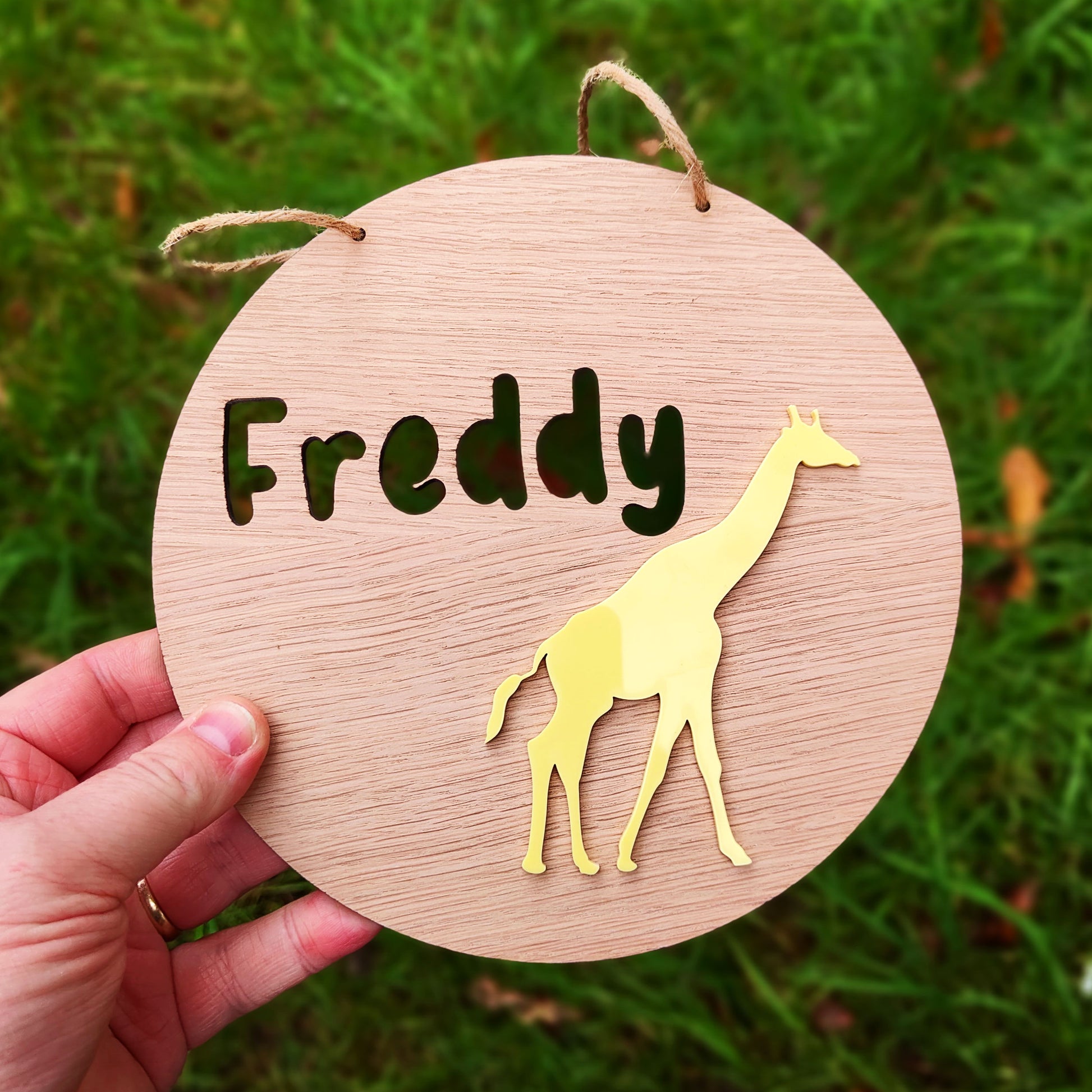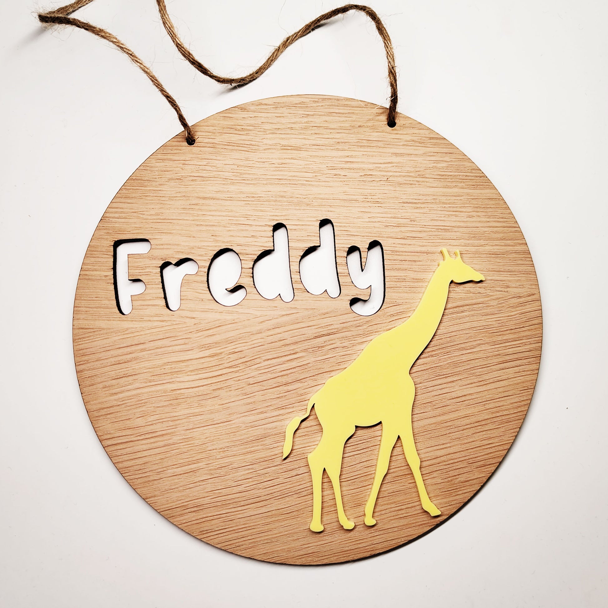 Personalised Giraffe Name Sign – Custom Bedroom Wall Hanging, Animal-Themed Kids Room Décor