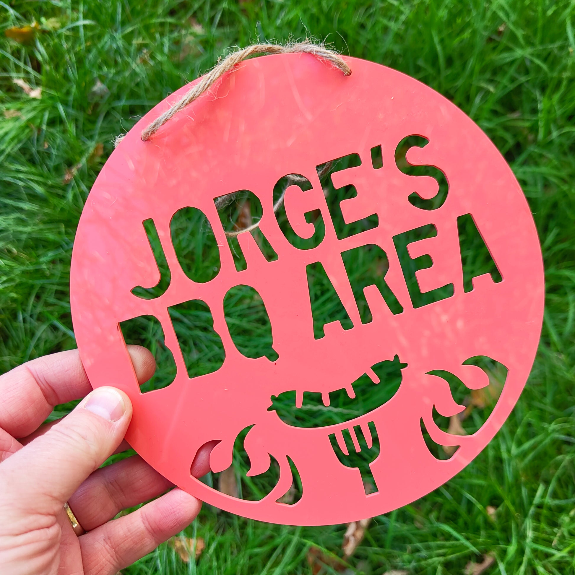 Personalised to your requirements, this BBQ area acrylic hanging sign is the perfect addition to any outdoor kitchen. All of the text can be personalised on this design so you can make it say pretty much anything you like!