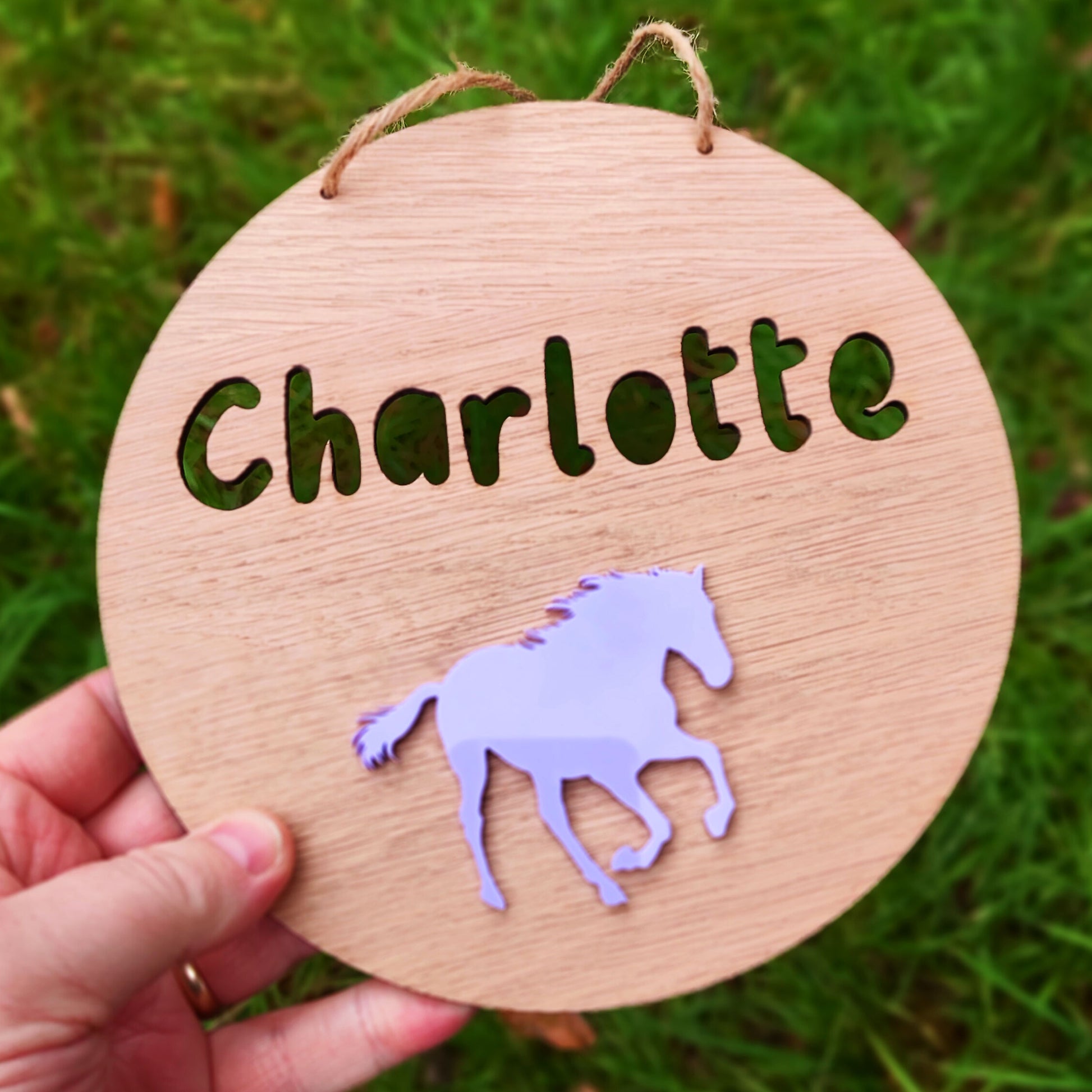 Personalised Horse Name Sign – Custom Bedroom Wall Hanging, Equestrian-Themed Kids Room Décor