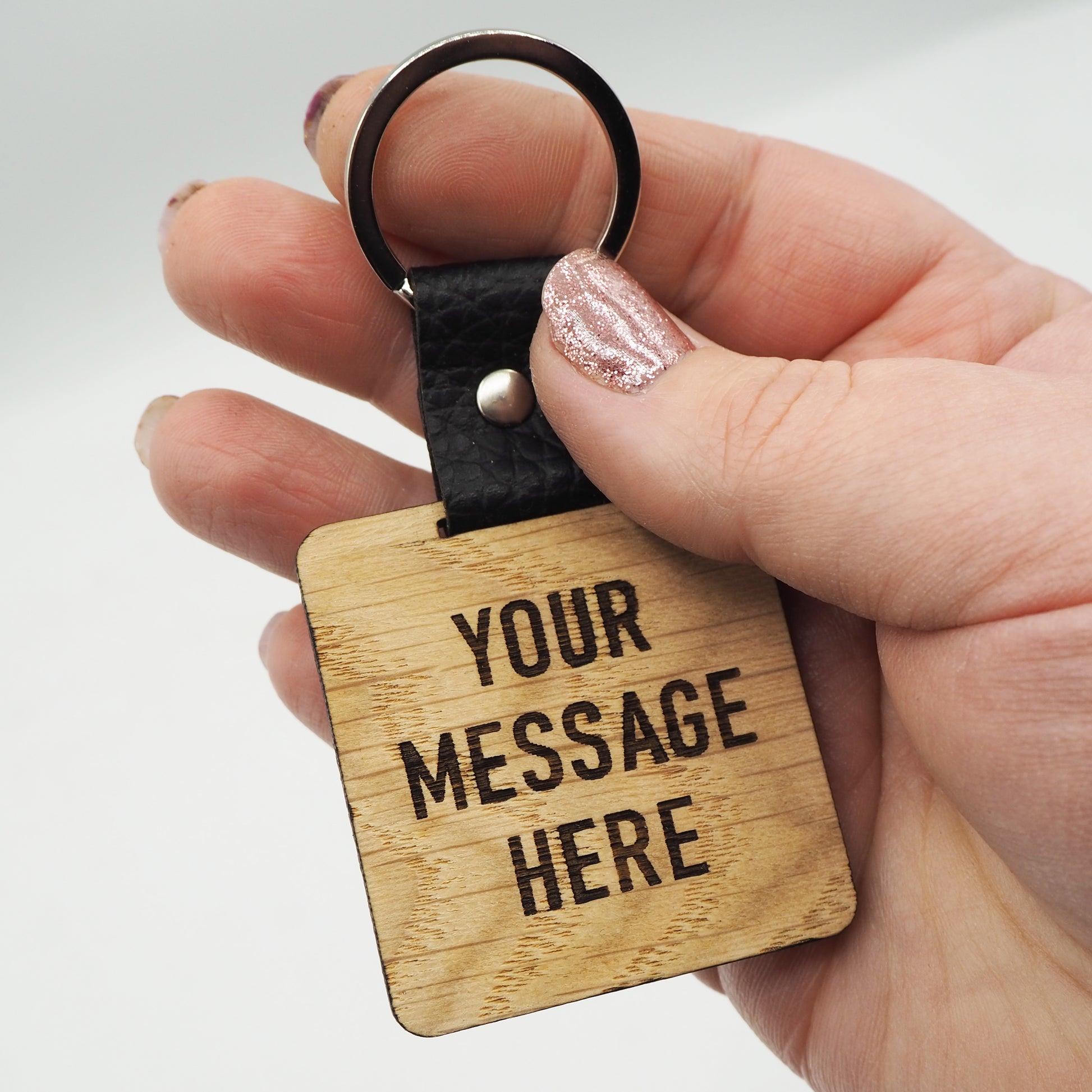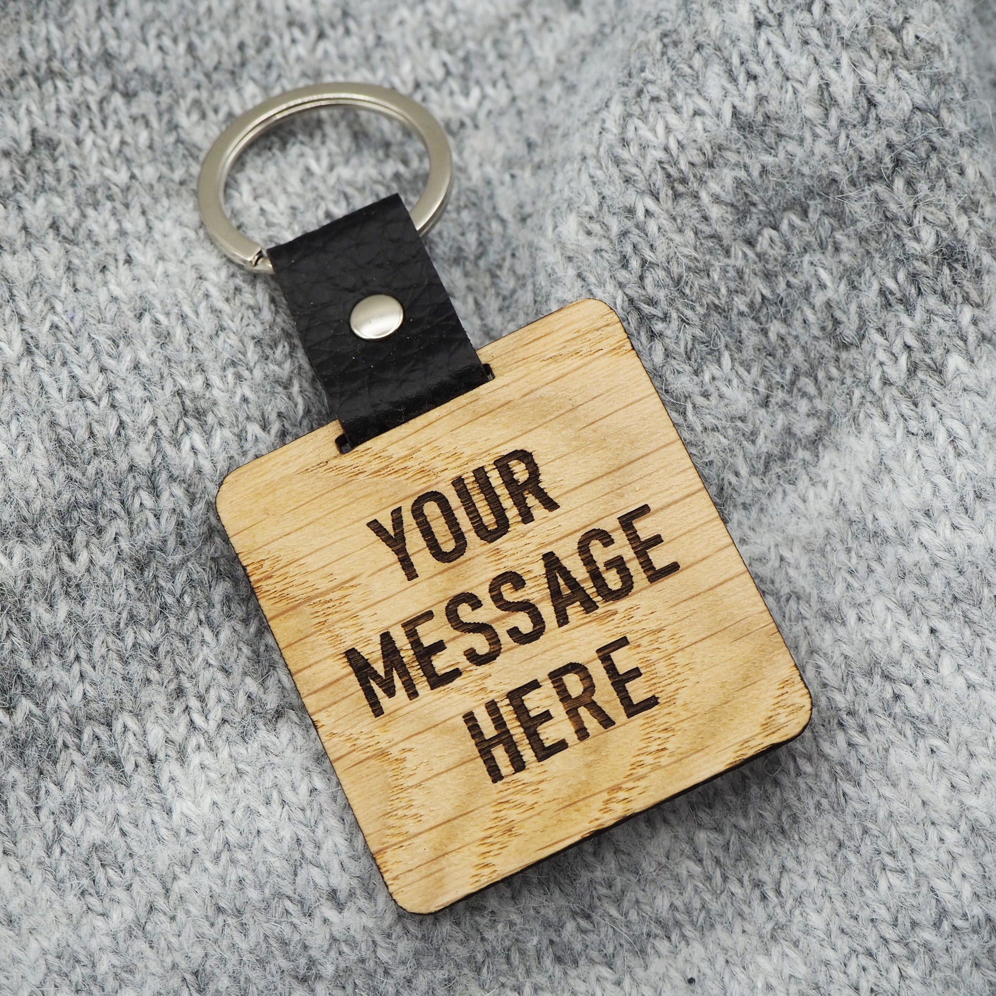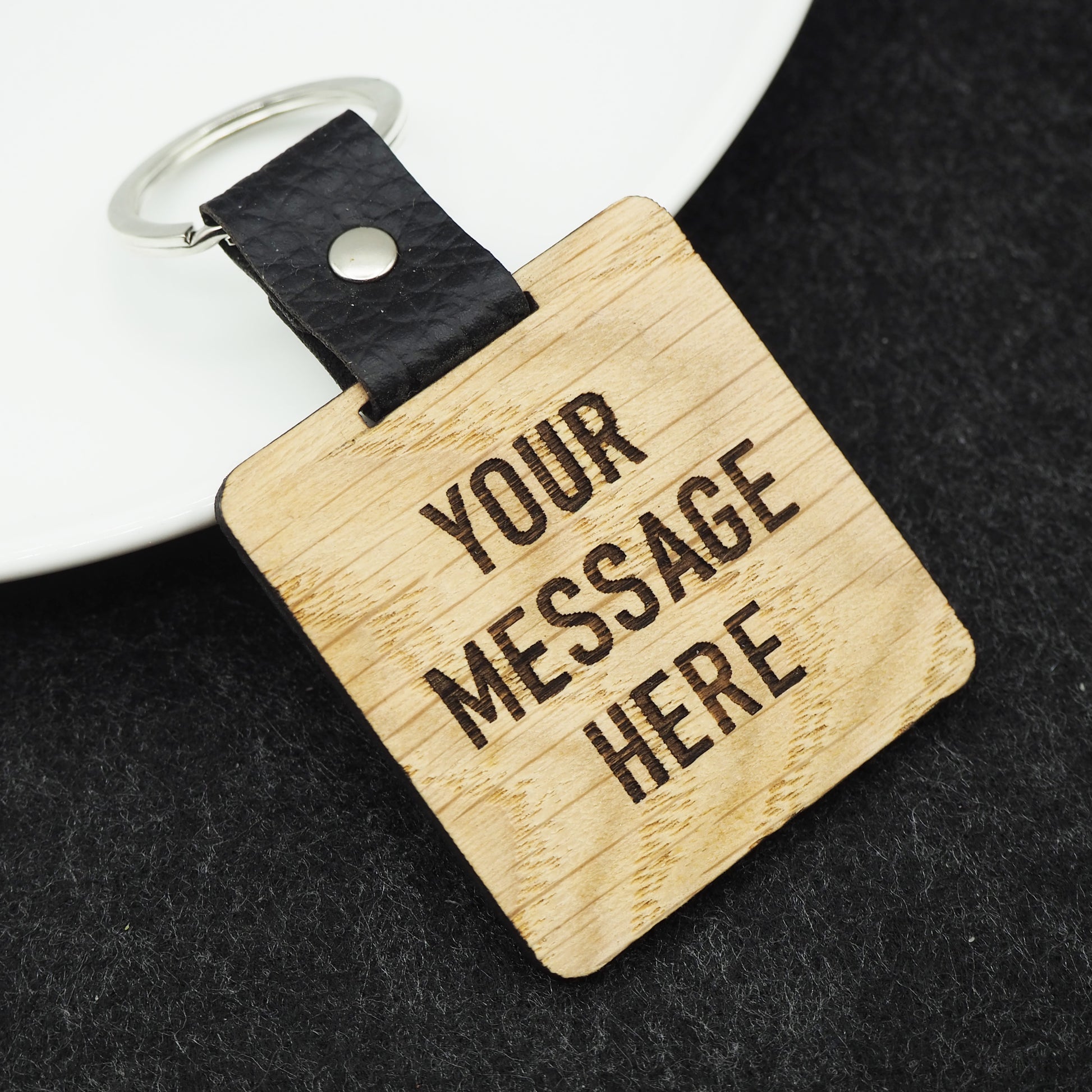 Engraved on real oak laminate with a faux leather coupler and modern keyring loop, our keyrings are the perfect addition to any set of keys.