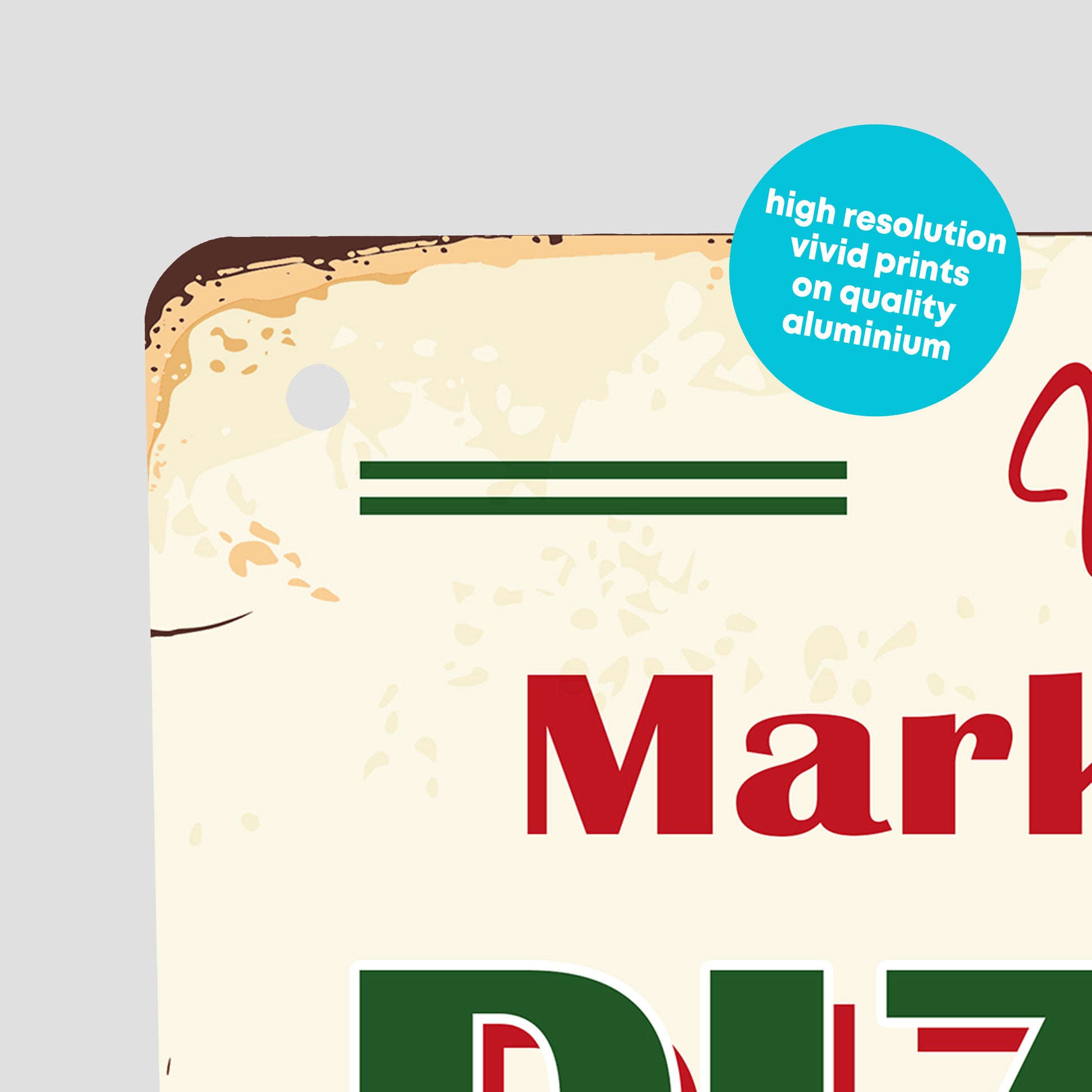 - Holes in the top - We'll put holes in the top two corners of the sign meaning it can be either hung or screwed in place.