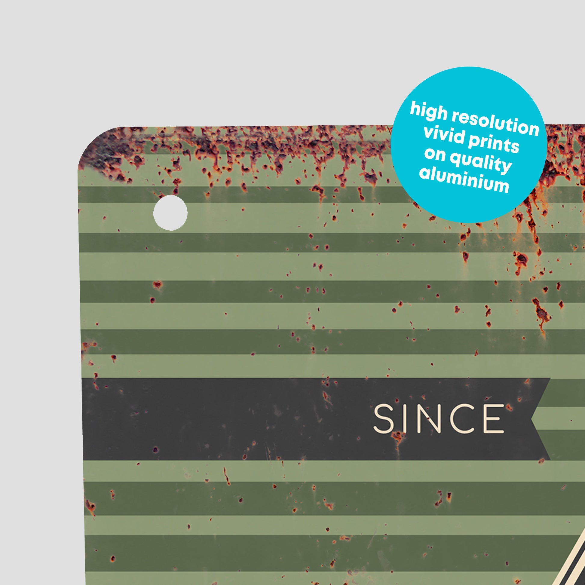All of our signs are sublimation printed on aluminium which is approximately 0.5mm thick. Signs can be used indoors or outdoors but should be kept away from direct sunlight.