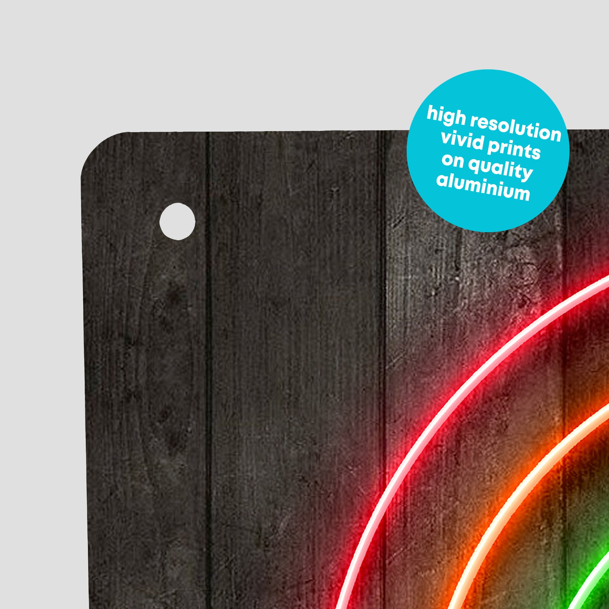 All of our signs are sublimation printed on aluminium which is approximately 0.5mm thick. Signs can be used indoors or outdoors but should be kept away from direct sunlight.