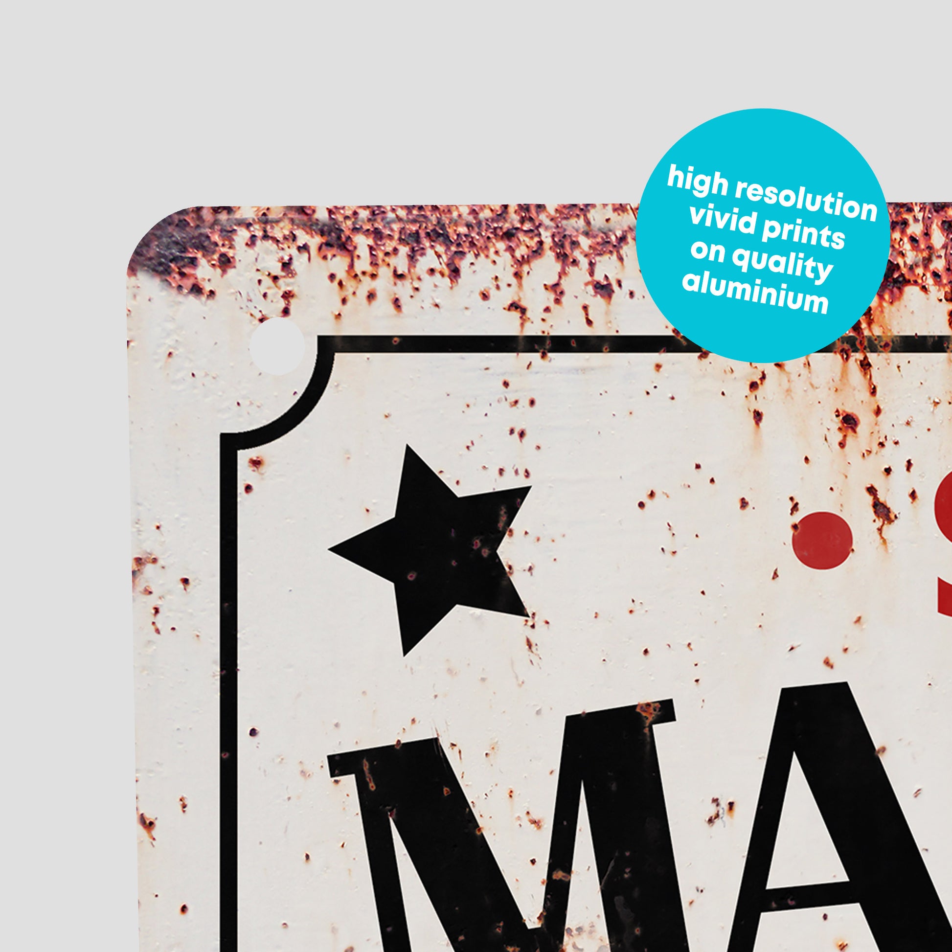 - Holes in the top - We'll put holes in the top two corners of the sign meaning it can be either hung or screwed in place.