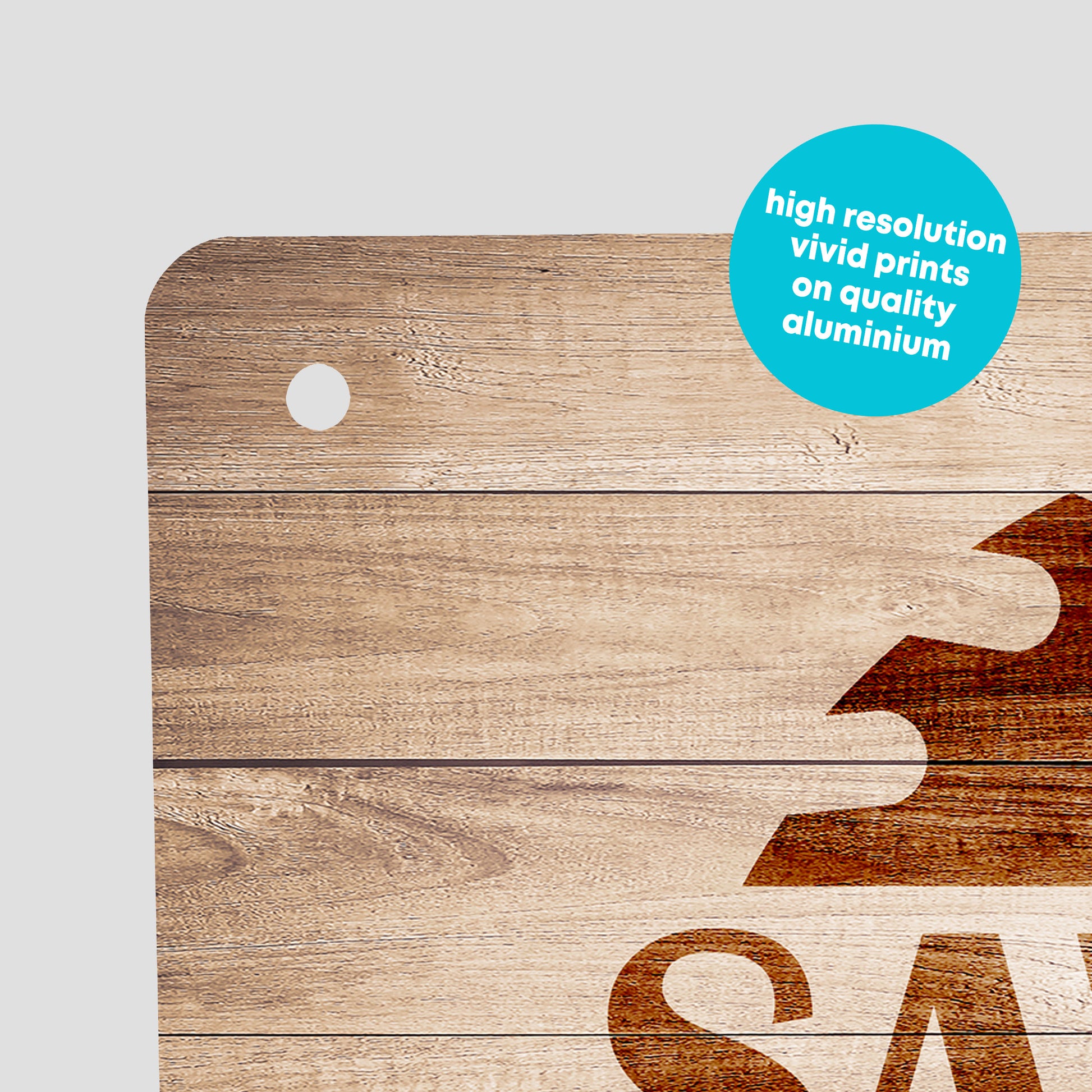 All of our signs are sublimation printed on aluminium which is approximately 0.5mm thick. Signs can be used indoors or outdoors but should be kept away from direct sunlight.